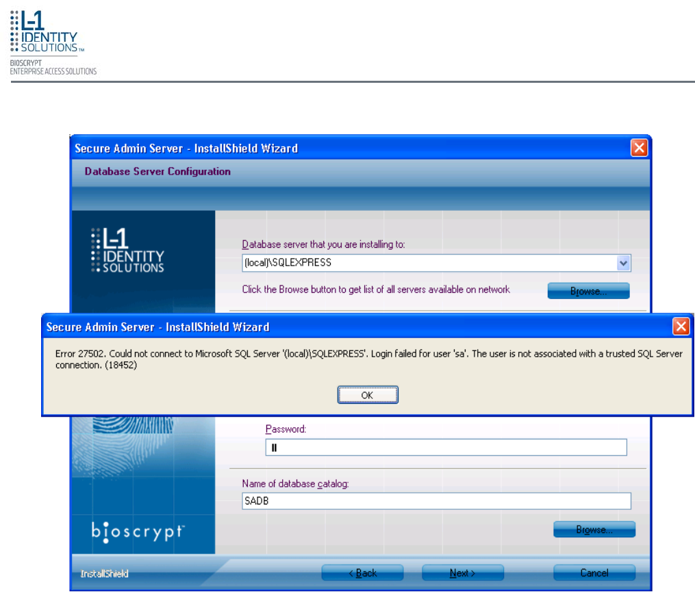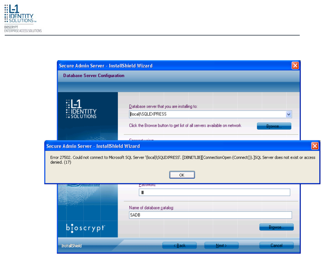 the InstallShield Wizard could not connect to the specified SQL database because it