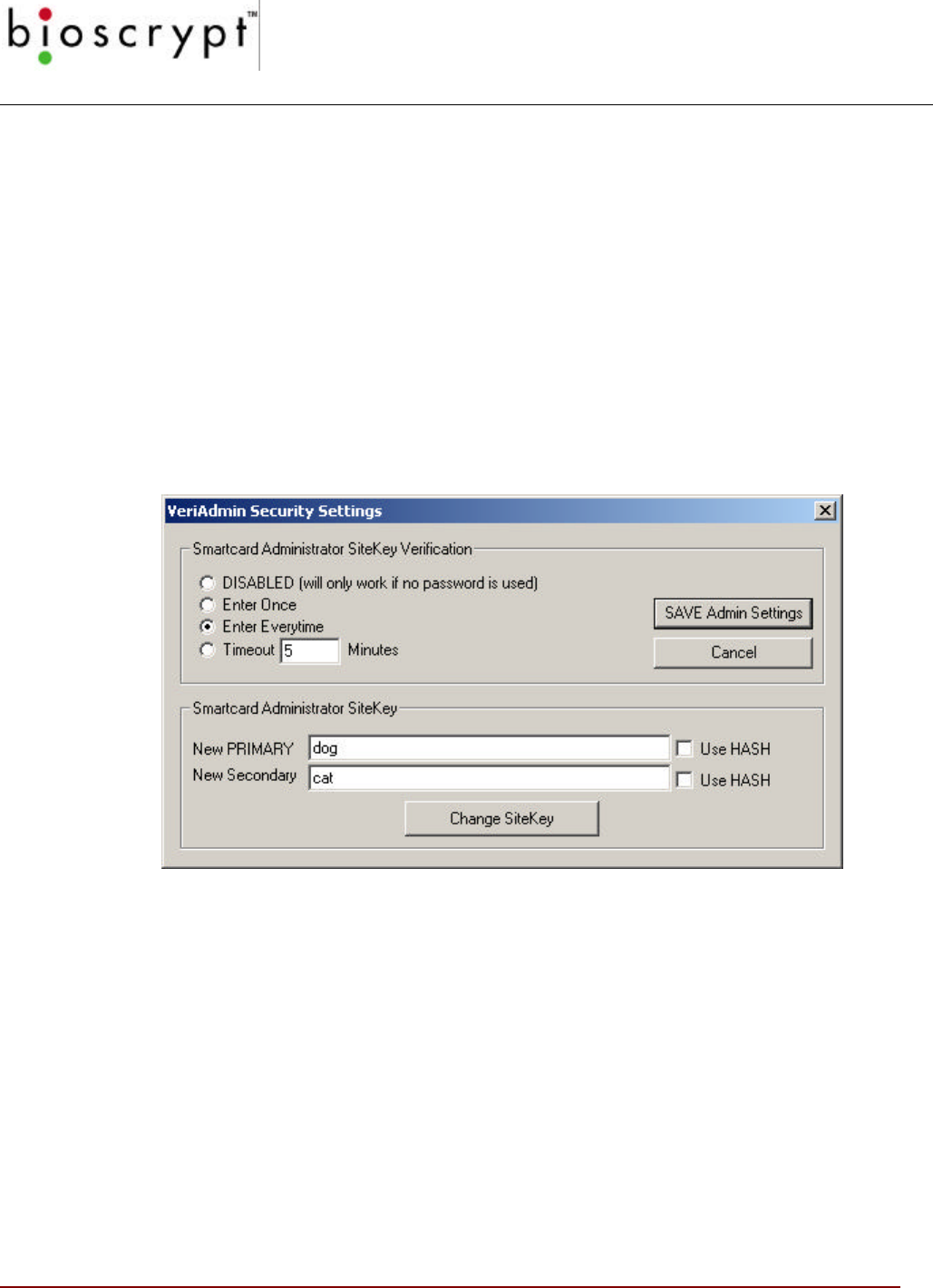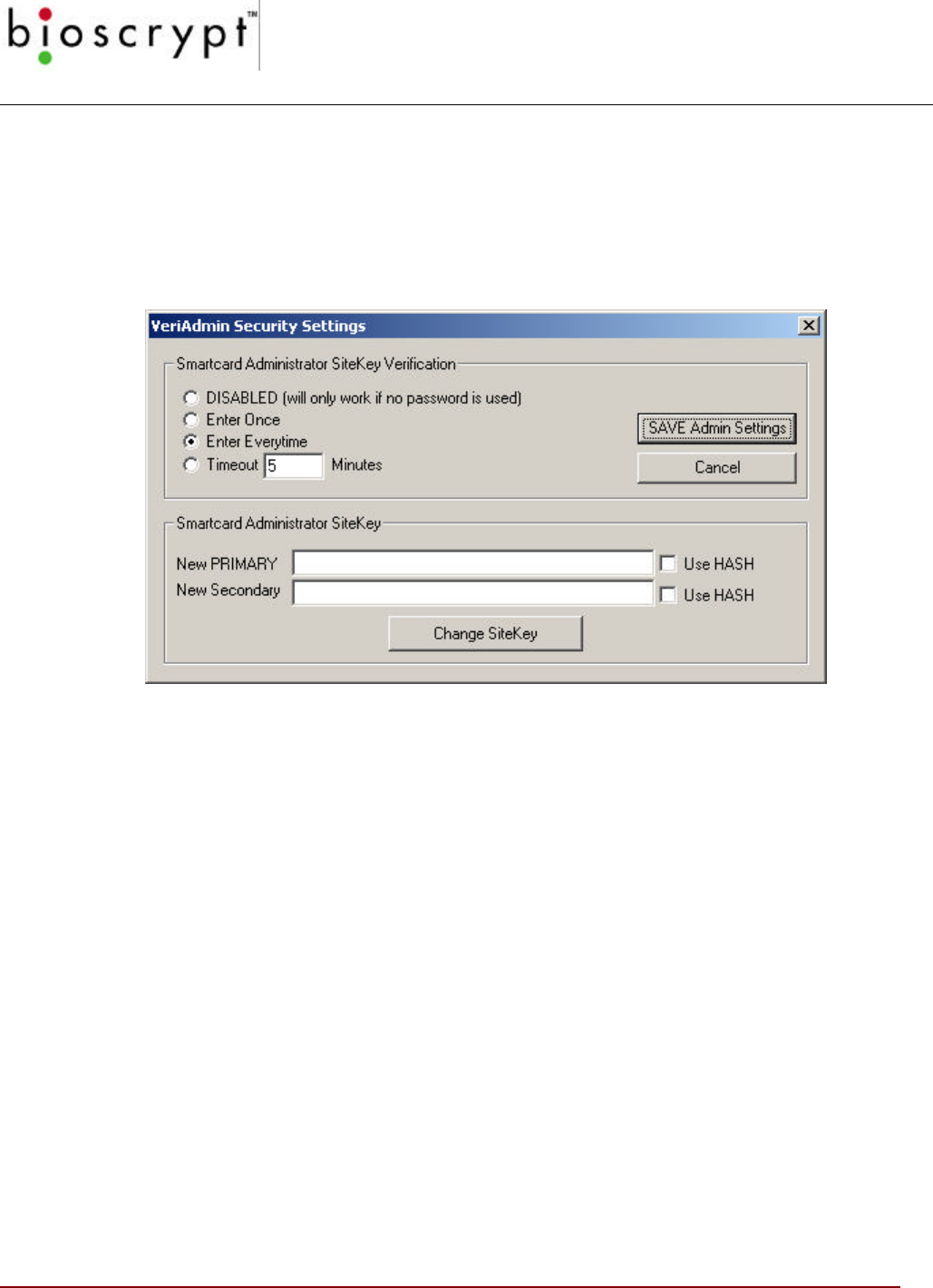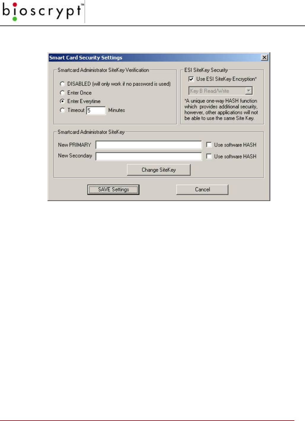 WARNING: These should NOT be changed or added to unless directed by Bioscrypt