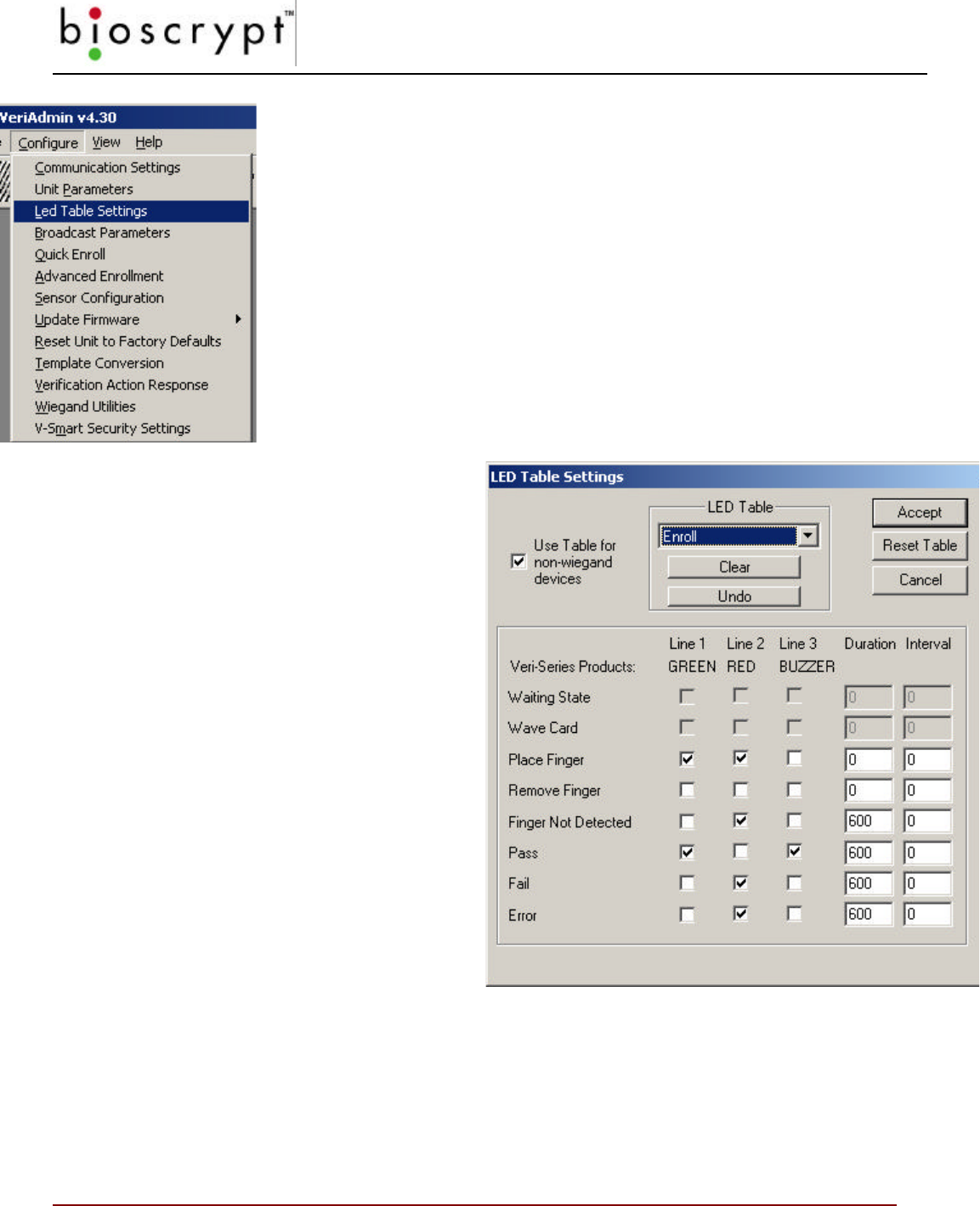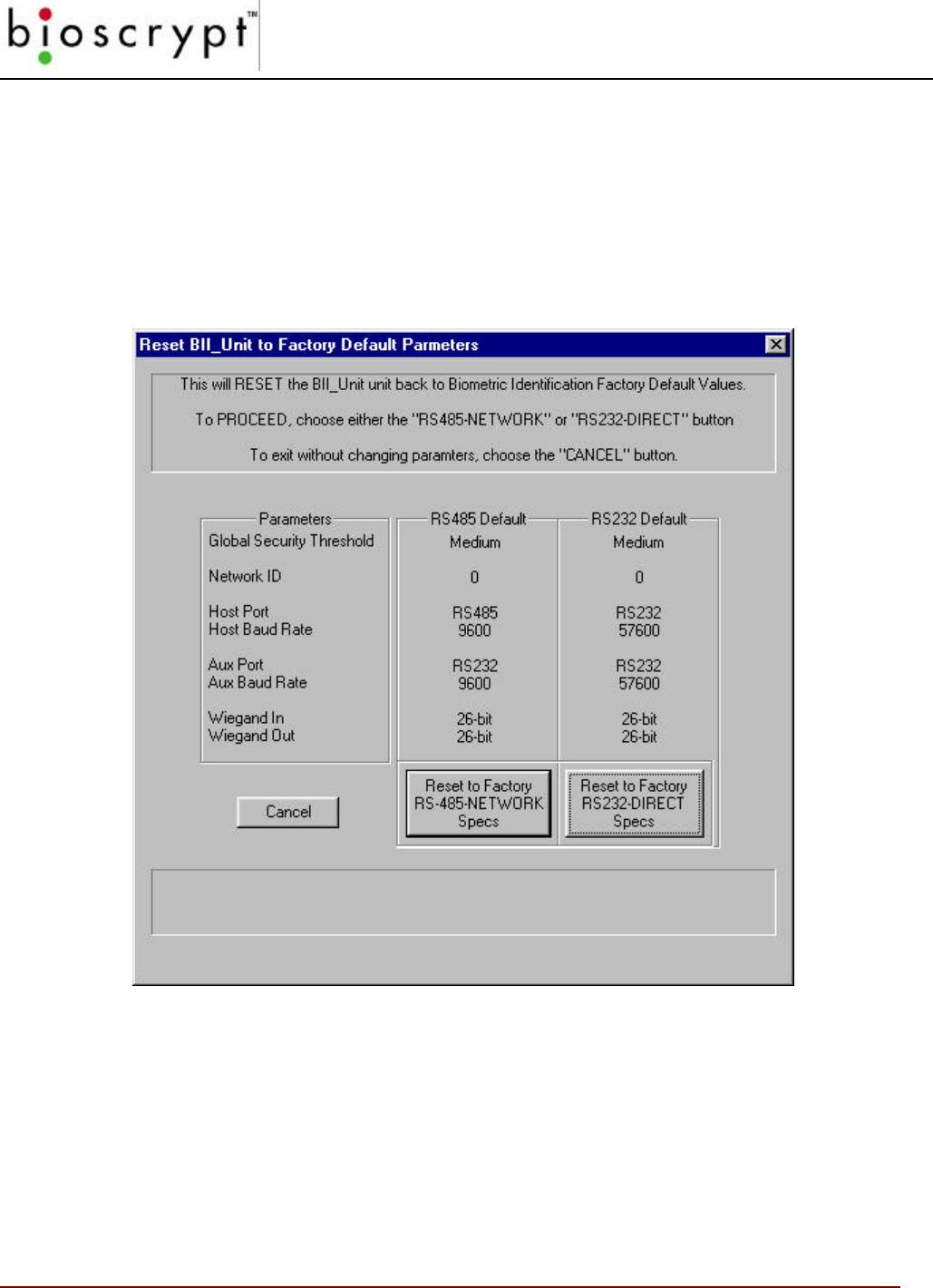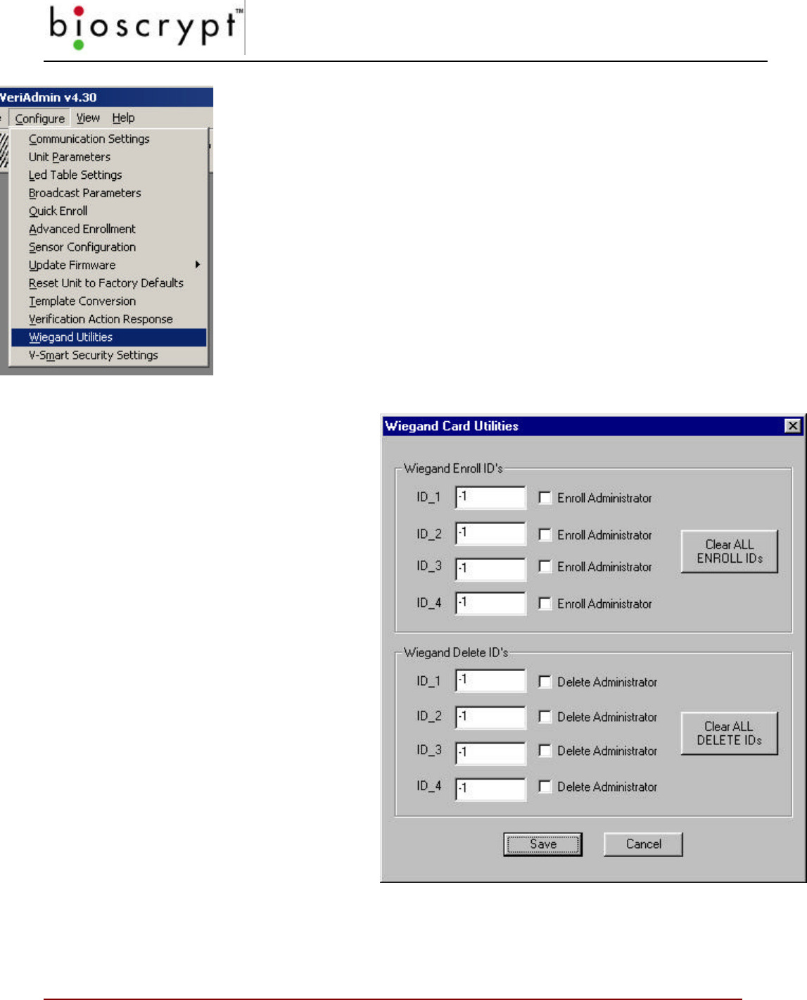 WARNING: These should NOT be changed or added to unless directed by Bioscrypt