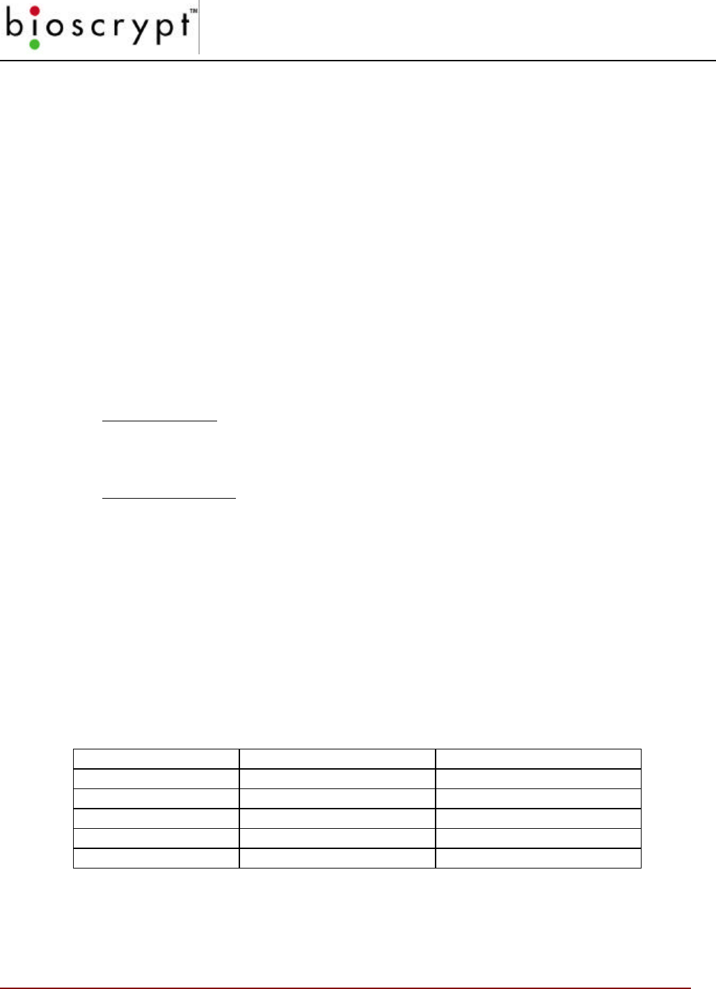 114 © Copyright 2002, Bioscrypt Inc. All rights reserved.