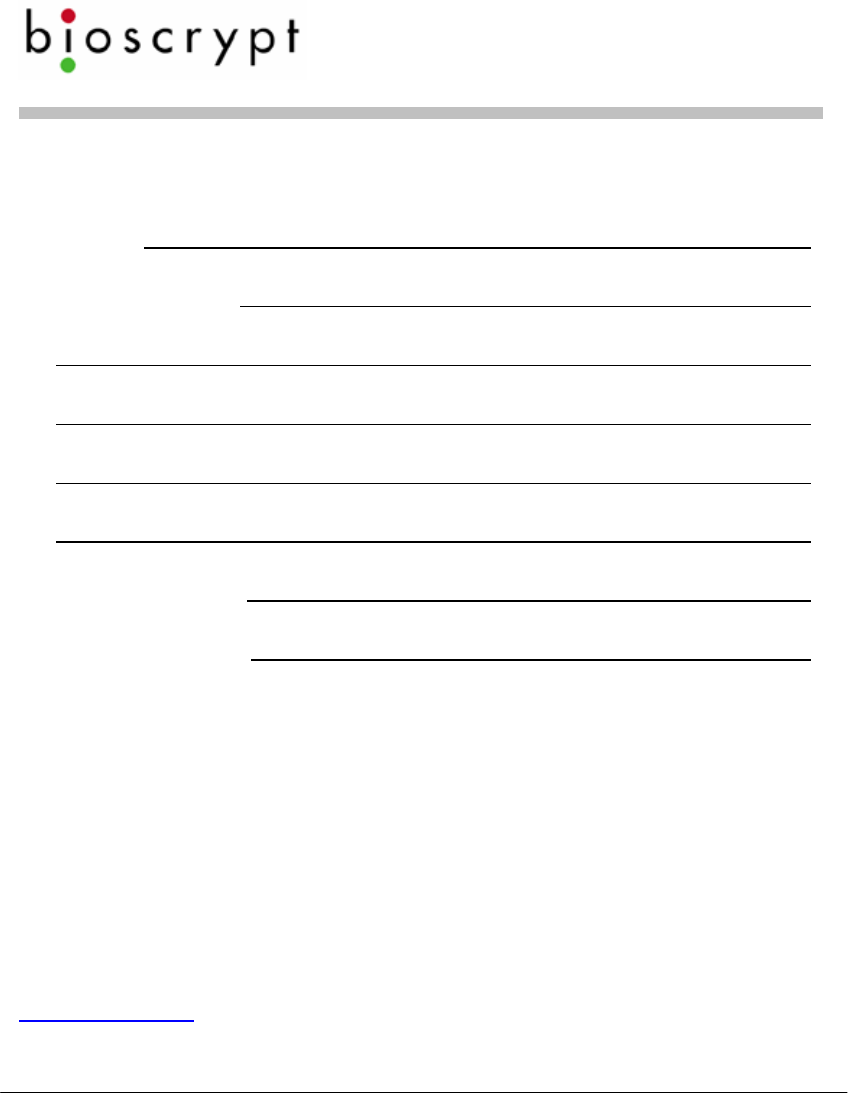 © Copyright 2005 Bioscrypt Inc. All rights reserved. Document #430-00111-18 3