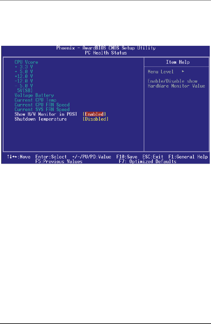 shutdown temperature. This function only works under Windows 98 ACPI mode.