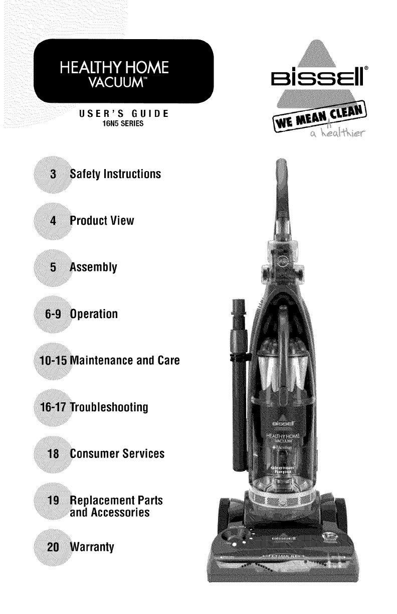 User Manual: Bissell 16N5 16N5 BISSELL VACUUM - Manuals and Guides View the owners manual for your BISSELL VACUUM #16N5. Home:Vacuums & Floor Care Parts:Bissell Parts:Bissell VACUUM Manual