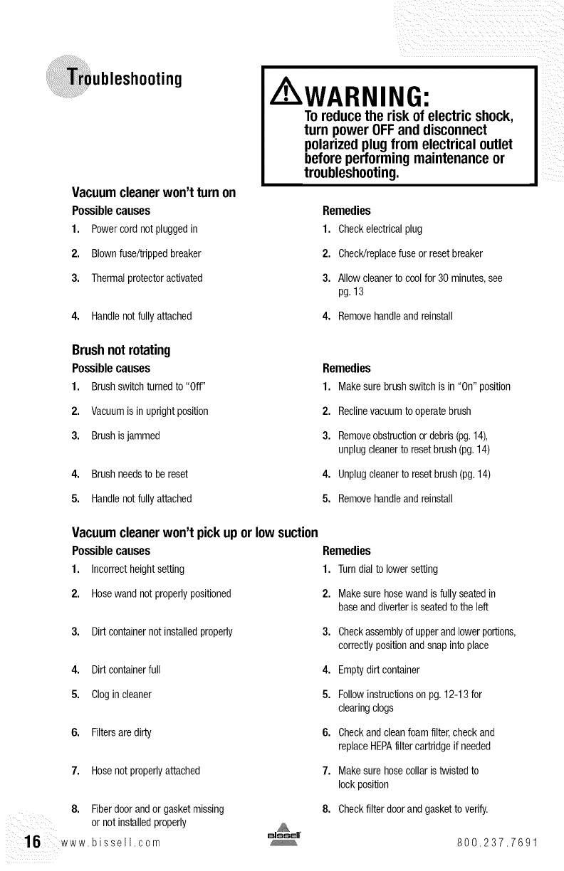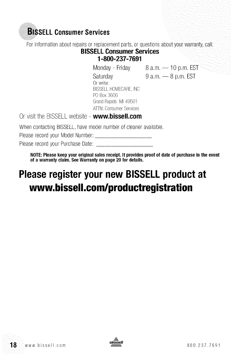 18 www,bissell,com 800,237,7691