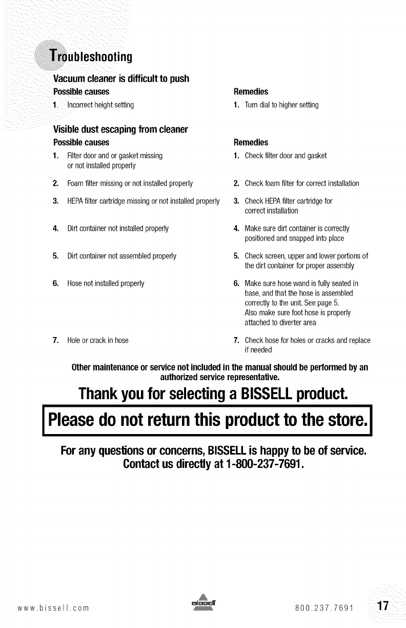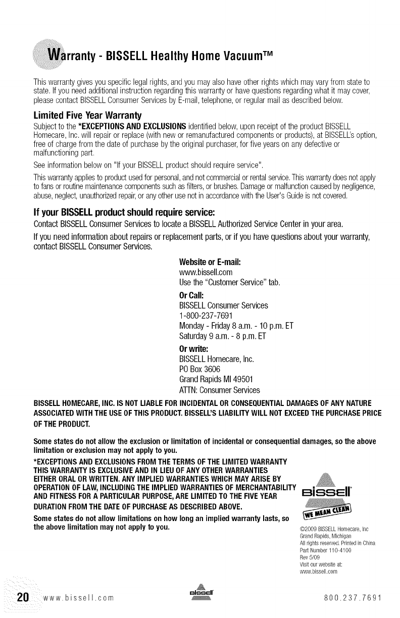 Or visitthe BISSELLwebsite- www,bissell,com