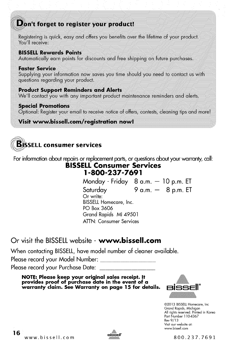 Or visit the BISSELLwebsite - www.bissell.€om