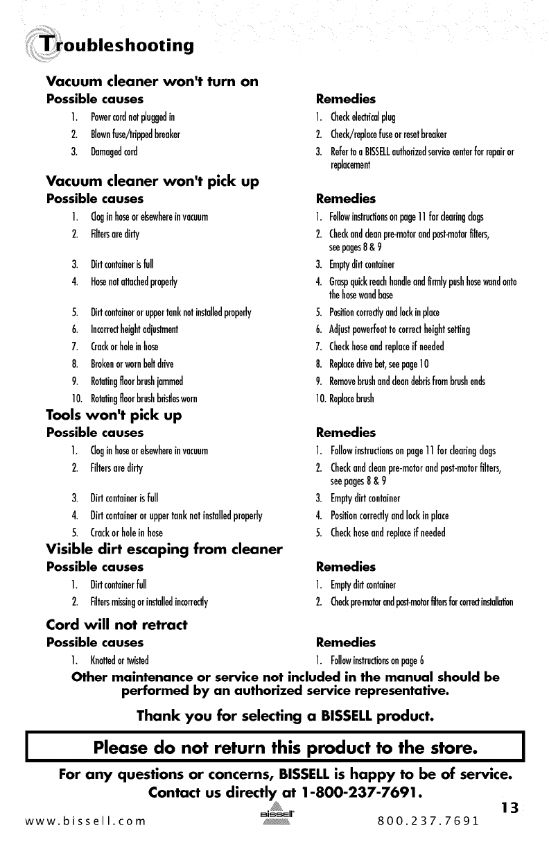 www.bissell.com _, 800.237.7691 13