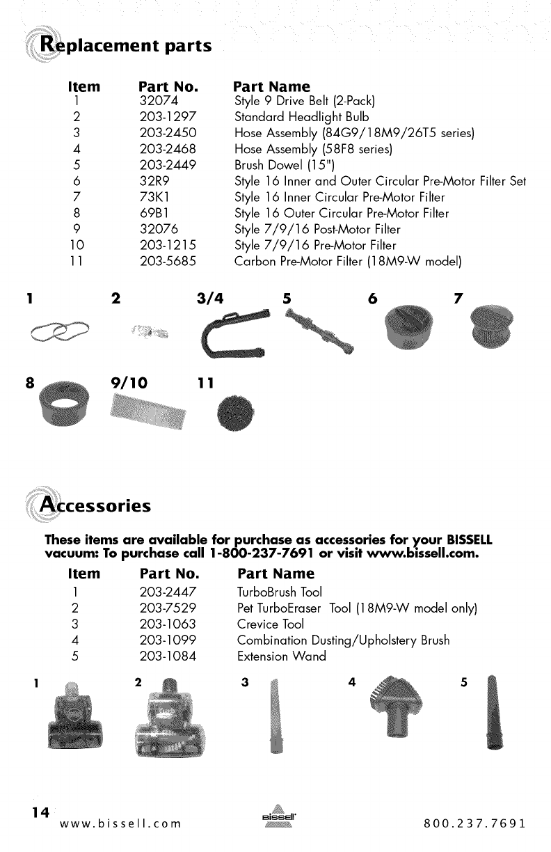 14 www.bissell com y_, 8 0 0.2 3 7.7 6 9 1
