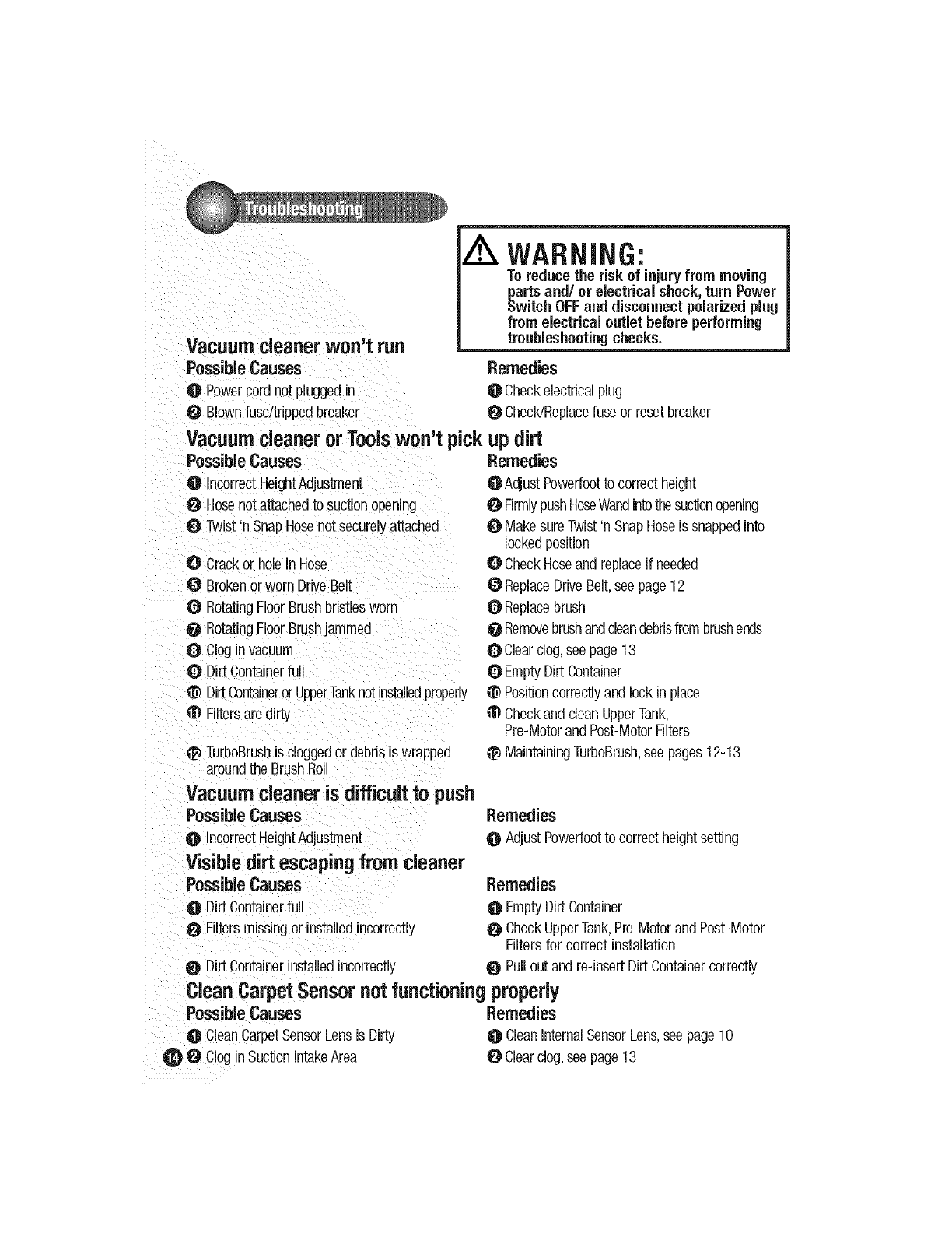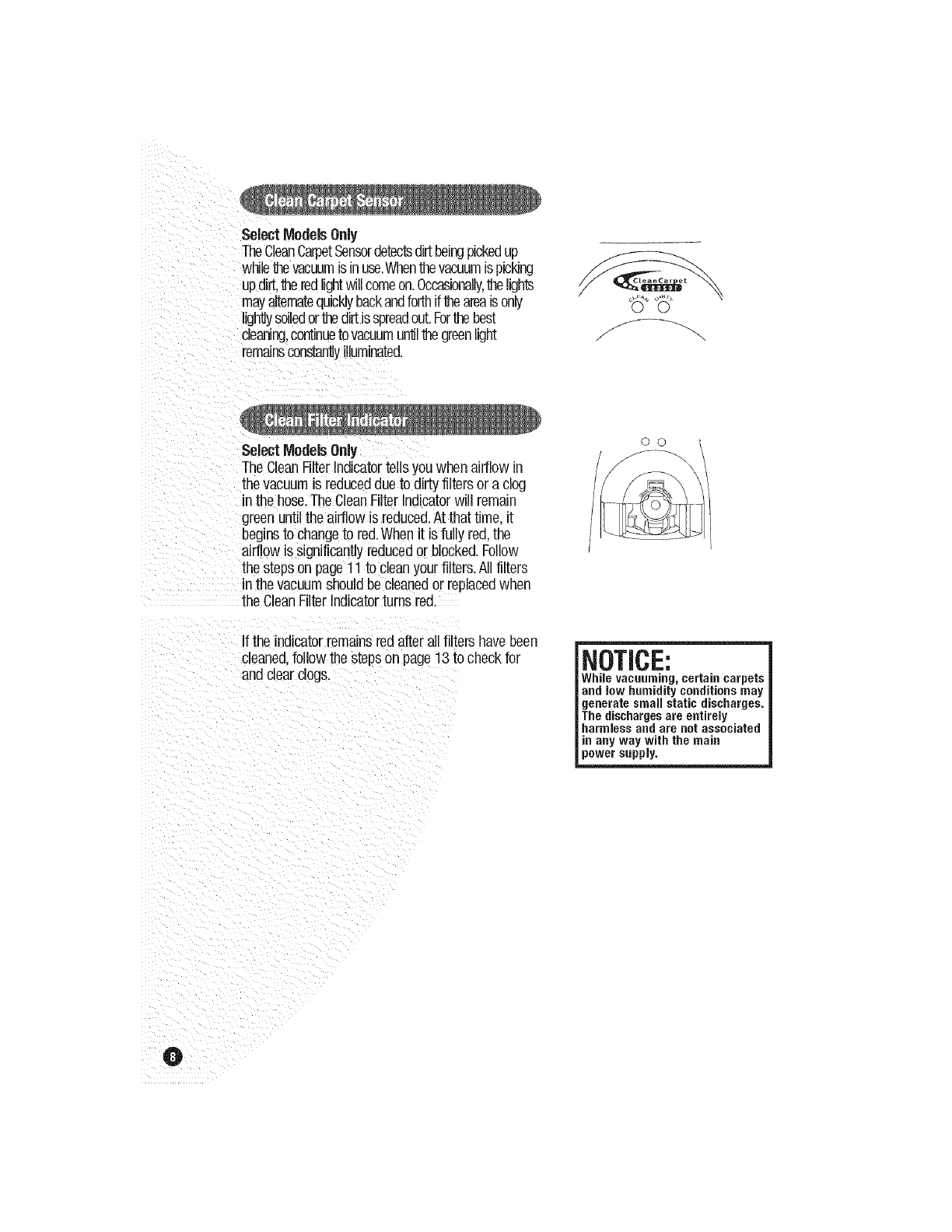 O CleanCarpetSensorLensis Dirty O CleanInternalSensorLens,seepage10