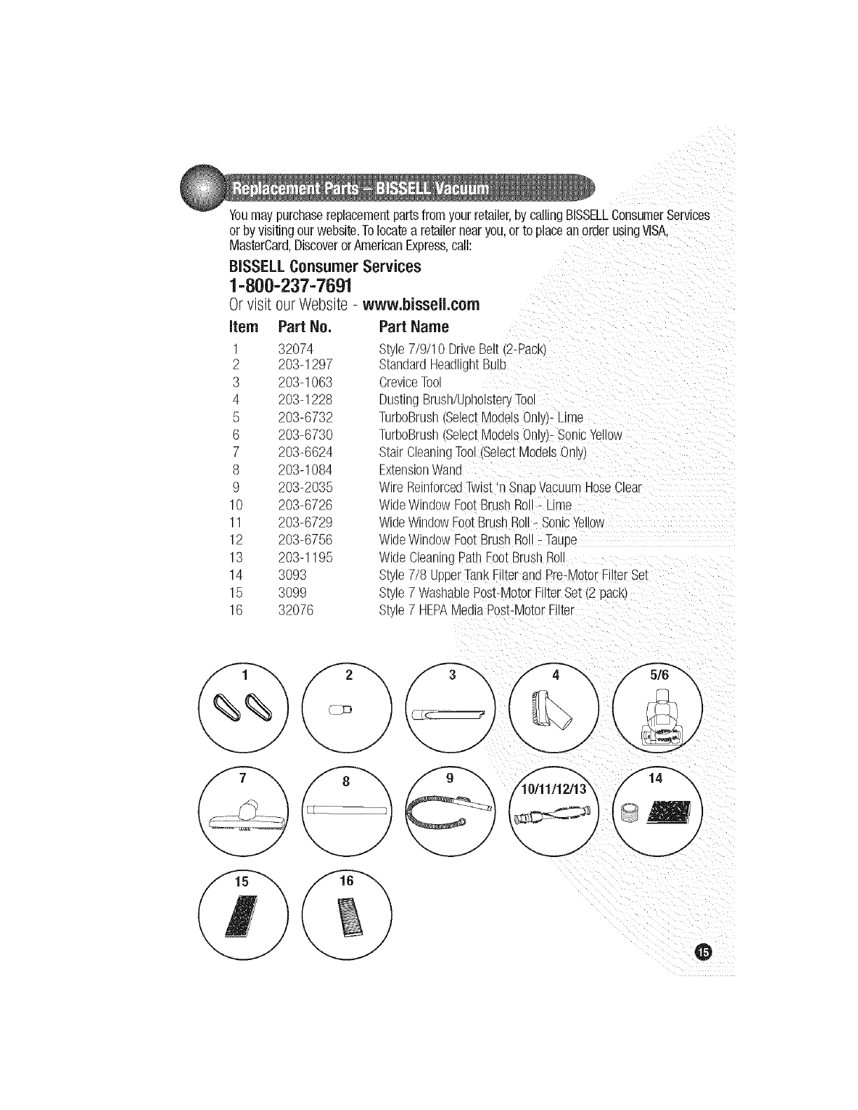 Youmaypurchasereplacementpartsfromyourretailer,bycallingBISSELLConsumerServices
