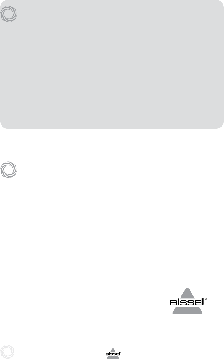 Or visit the BISSELL website - www.bissell.com