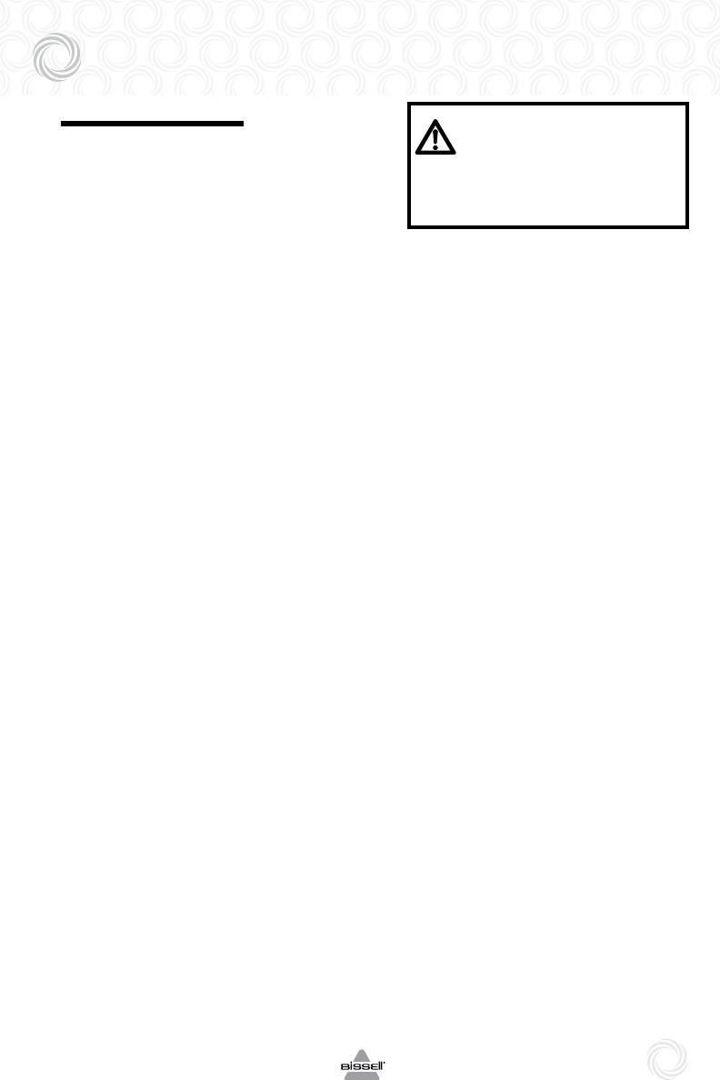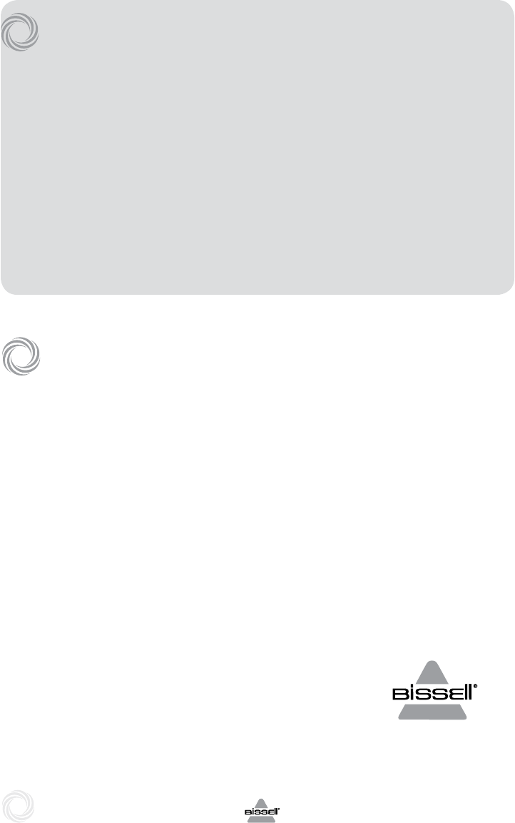 BISSELL IS NOT LIABLE FOR INCIDENTAL OR CONSEQUENTIAL DAMAGES OF ANY NATURE