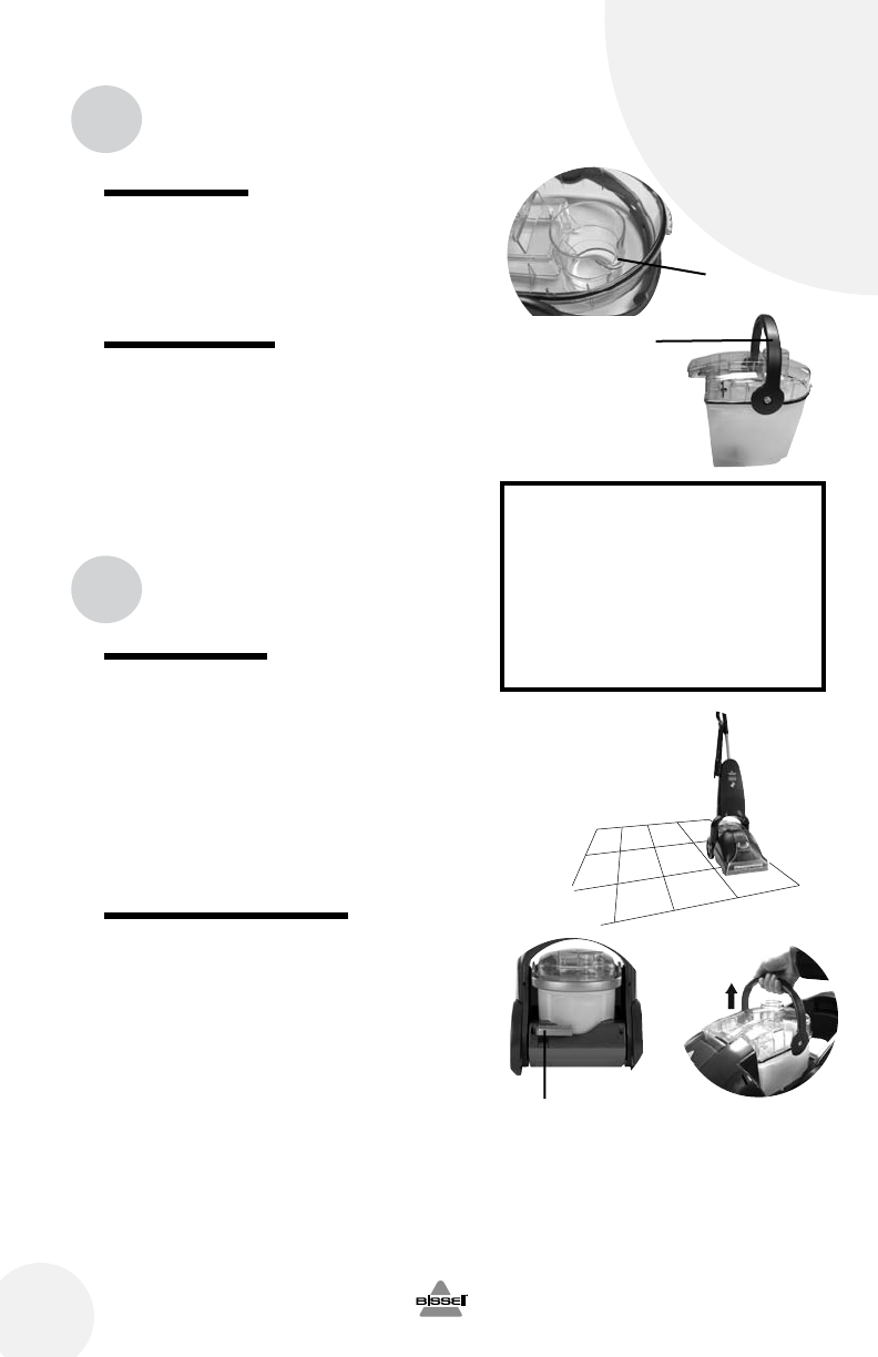4. 2-in-1 water tank has picked up maximum dirty water. 4. Empty tank and refill, refer to