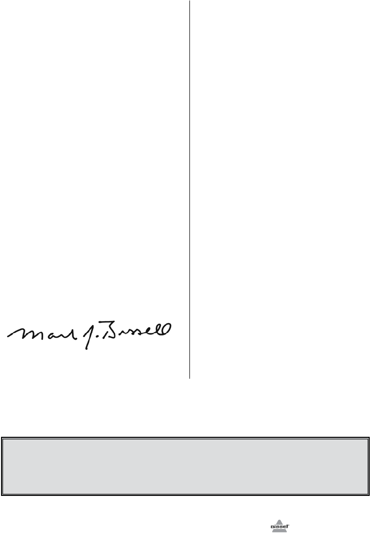 BISSELL IS NOT LIABLE FOR INCIDENTAL OR CONSEQUENTIAL DAMAGES