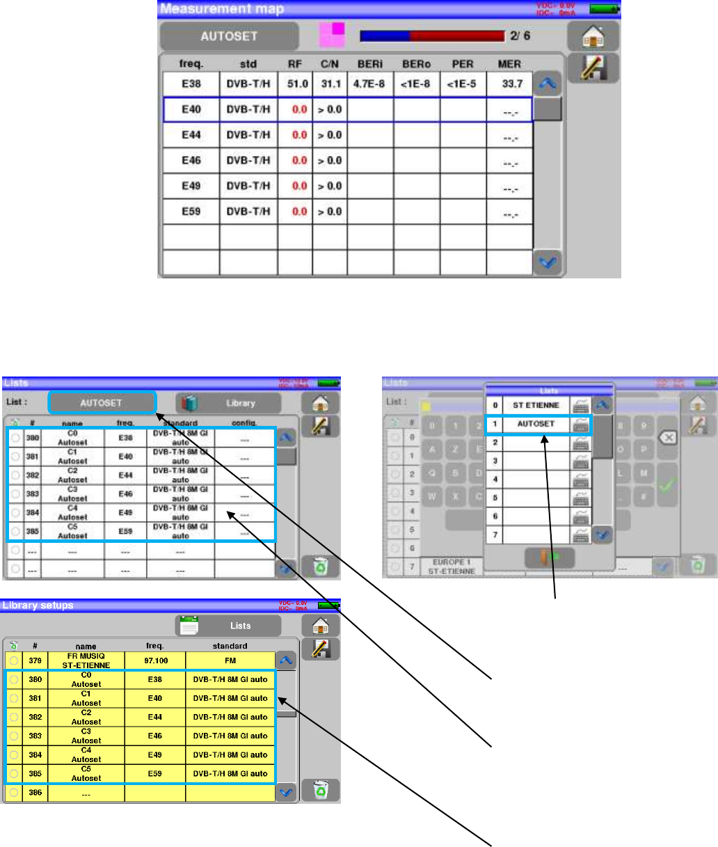 Measure plan : Allows the simultaneous view of characteristics (frequencu, channel, standard…) of var-