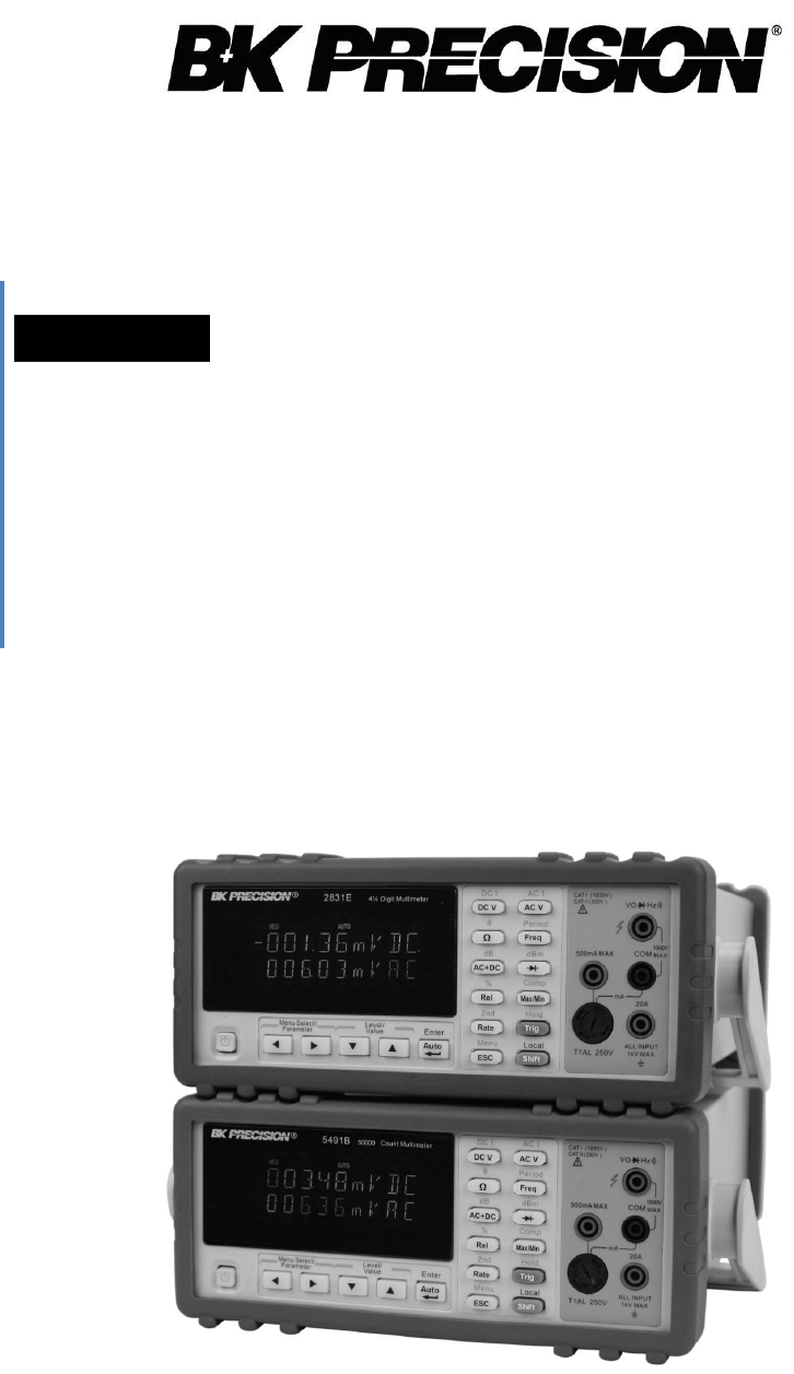 2831D And 5491B Bench Multimeters BK5491B Manual