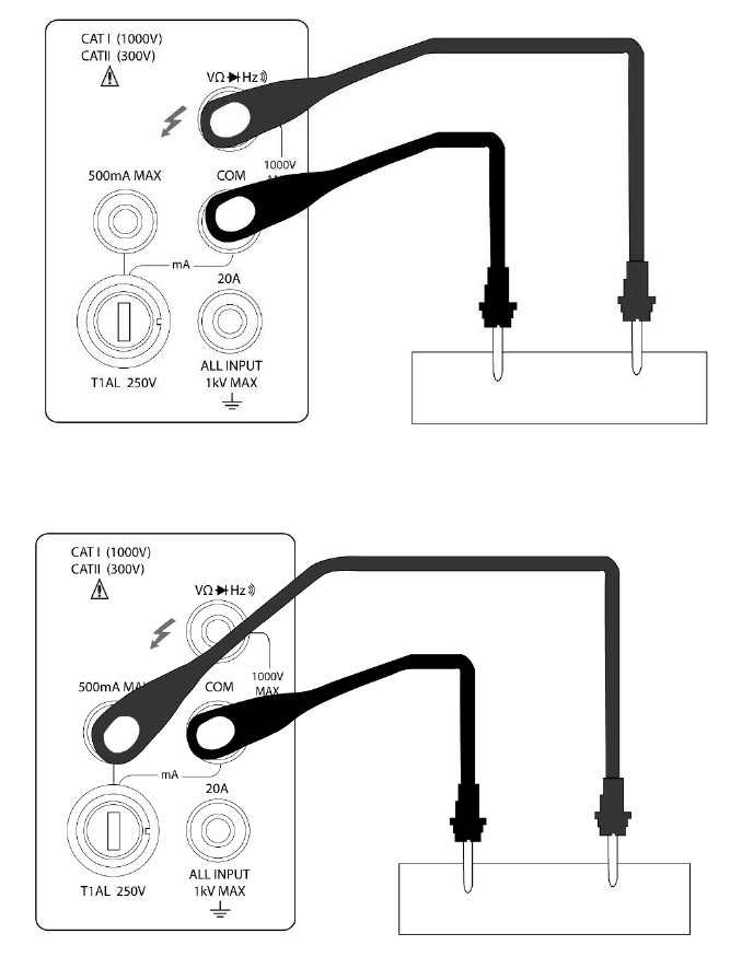 Protection d’entrée maximum: 1000 VDC or 750 VAC for all ranges.