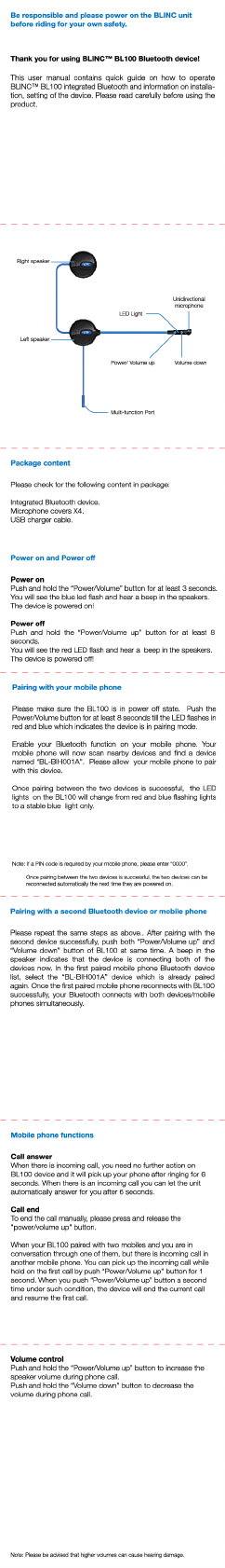 Bl Electronic and Technology BL100 Bluetooth Headset User Manual Print