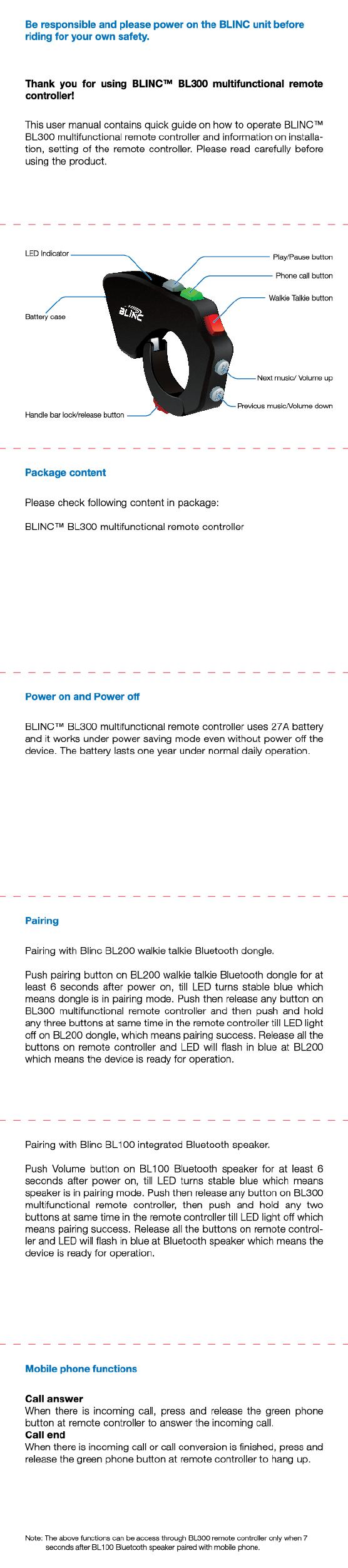 Bl Electronic and Technology BL300 Remote Controller User Manual Print