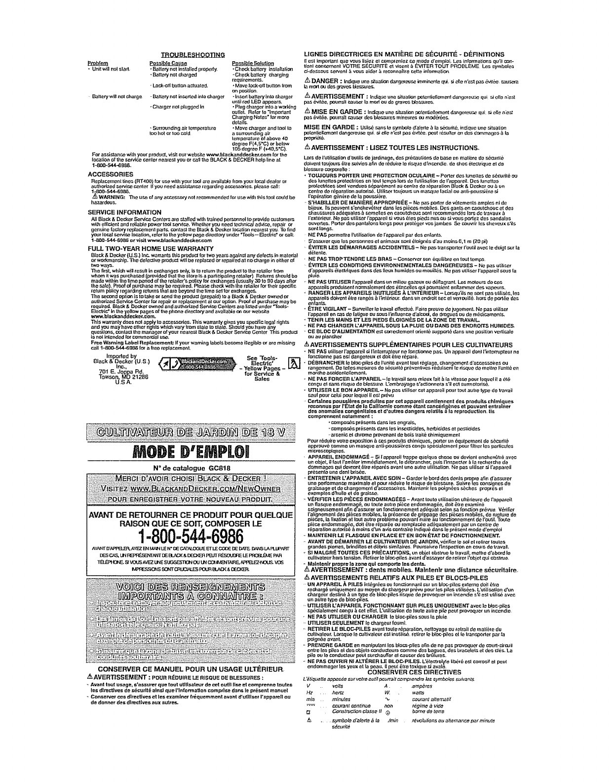 Black & Decker GC818 TYPE 1 User Manual CULTIVATOR Manuals And Guides L0905280