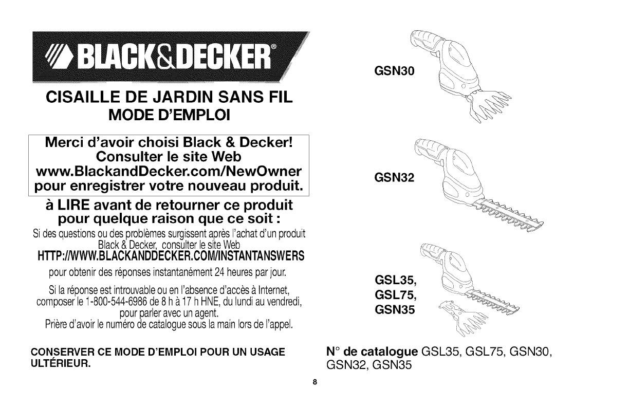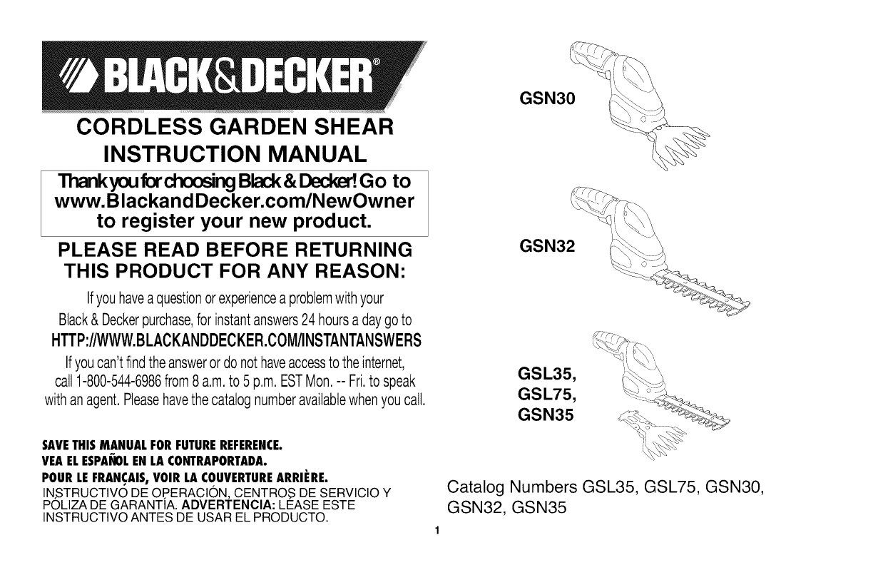 Black & Decker GSL35 TYPE 1 User Manual SHEAR Manuals And Guides 1311218L