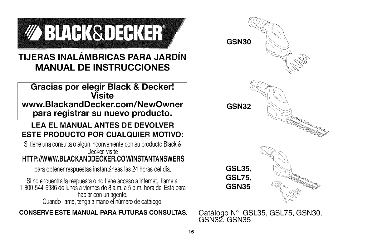 User Manual: Black & Decker GSL35 TYPE 1 GSL35 TYPE 1 BLACK & DECKER SHEAR - Manuals and Guides View the owners manual for your BLACK & DECKER SHEAR #GSL35TYPE1. Home:Tool Parts:Black&Decker Parts:Black&Decker SHEAR Manual