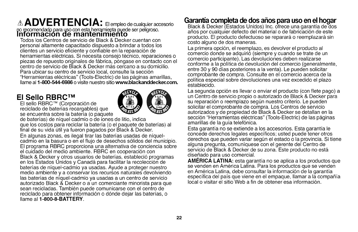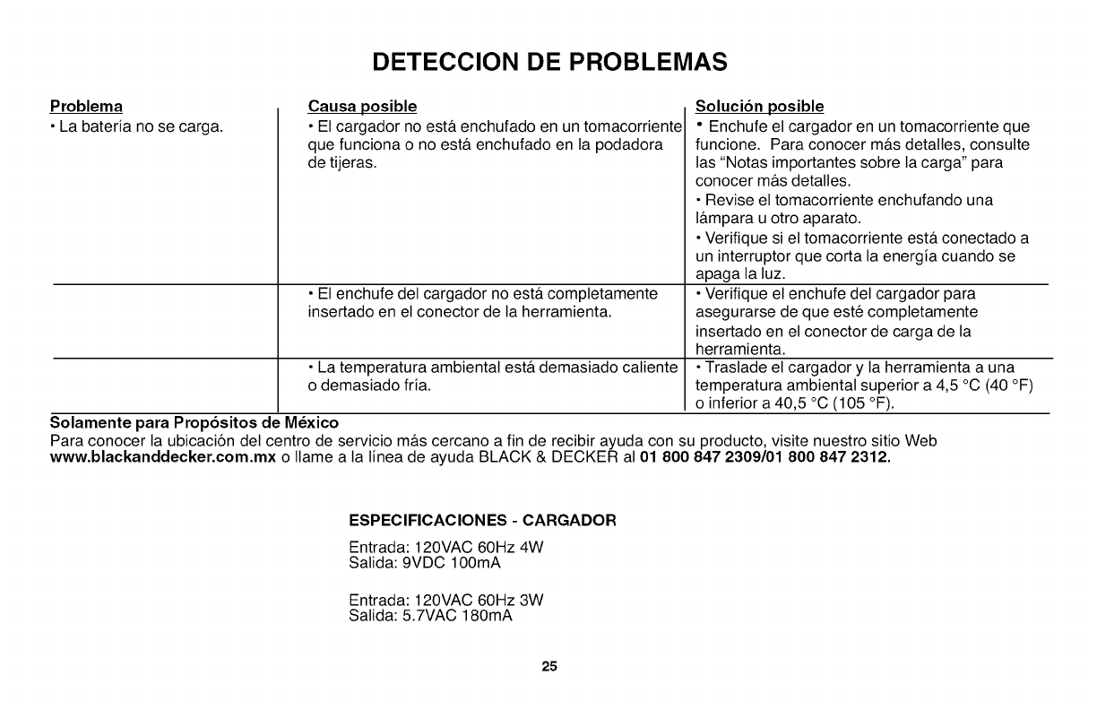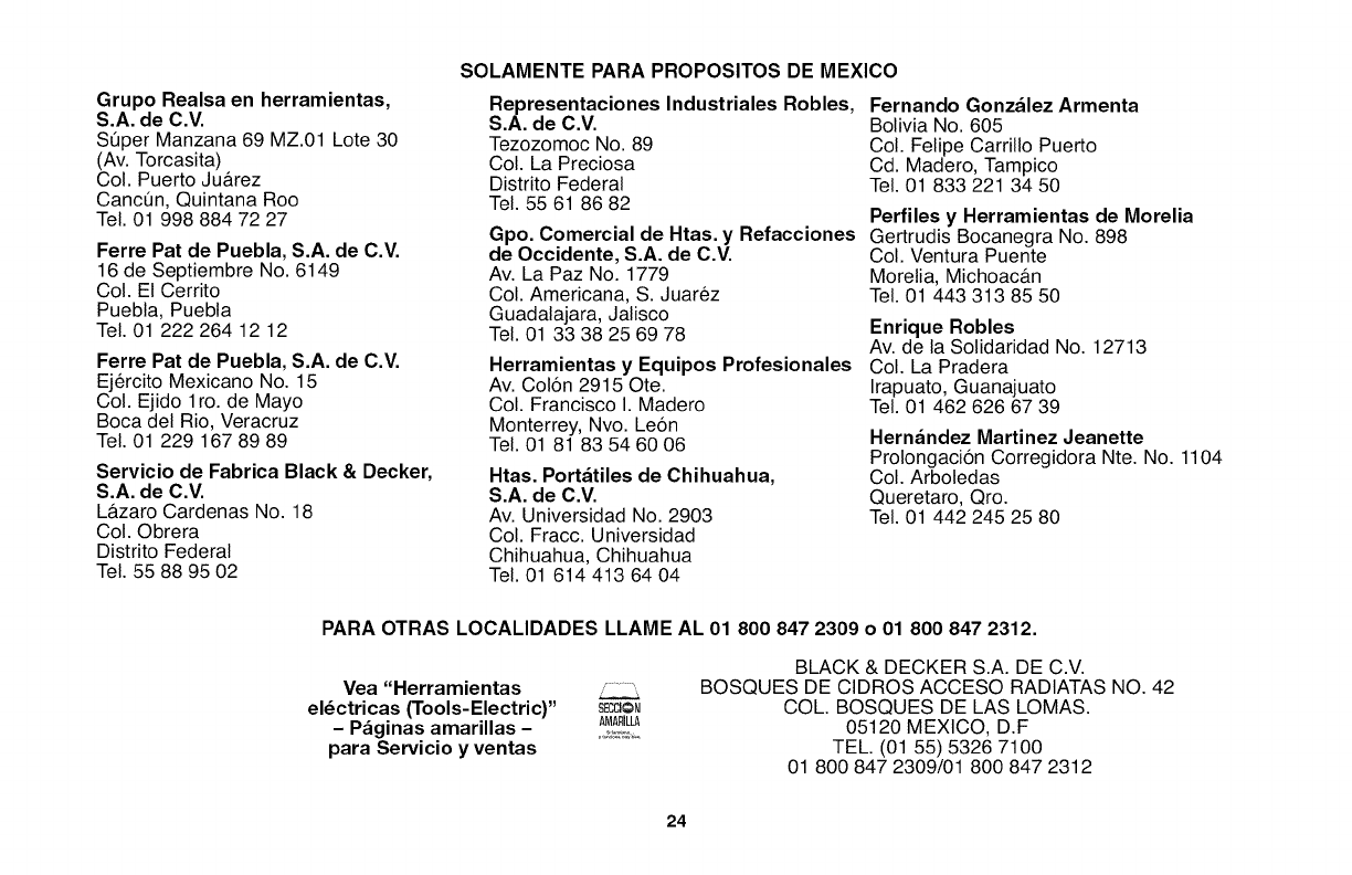 www.blackanddecker.com.mx o Ilame a la linea de ayuda BLACK & DECKER al 01 800 847 2309/01 800 847 2312.