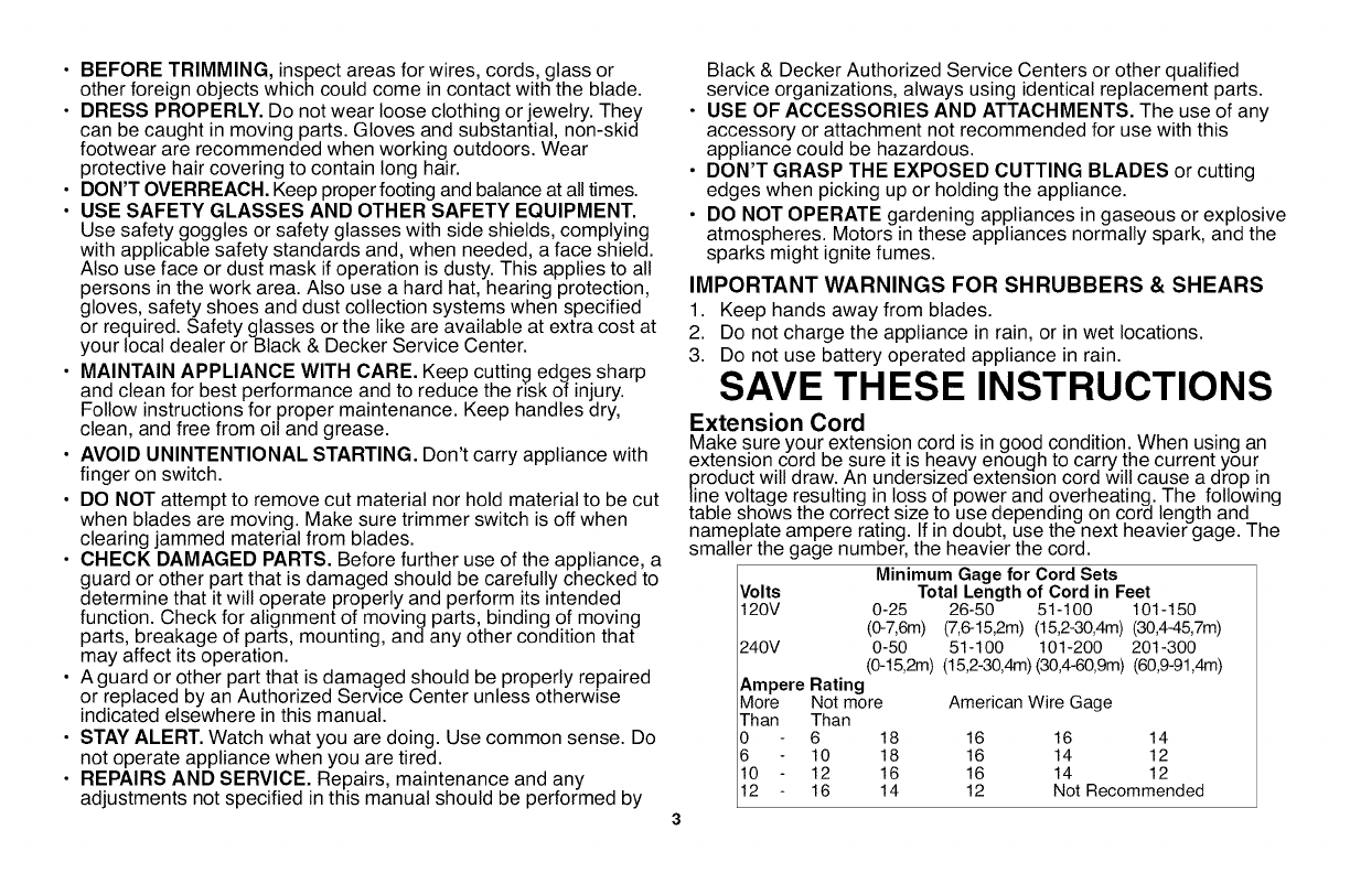 • STORE IDLE APPLIANCE INDOORS. When not in use, shrubber