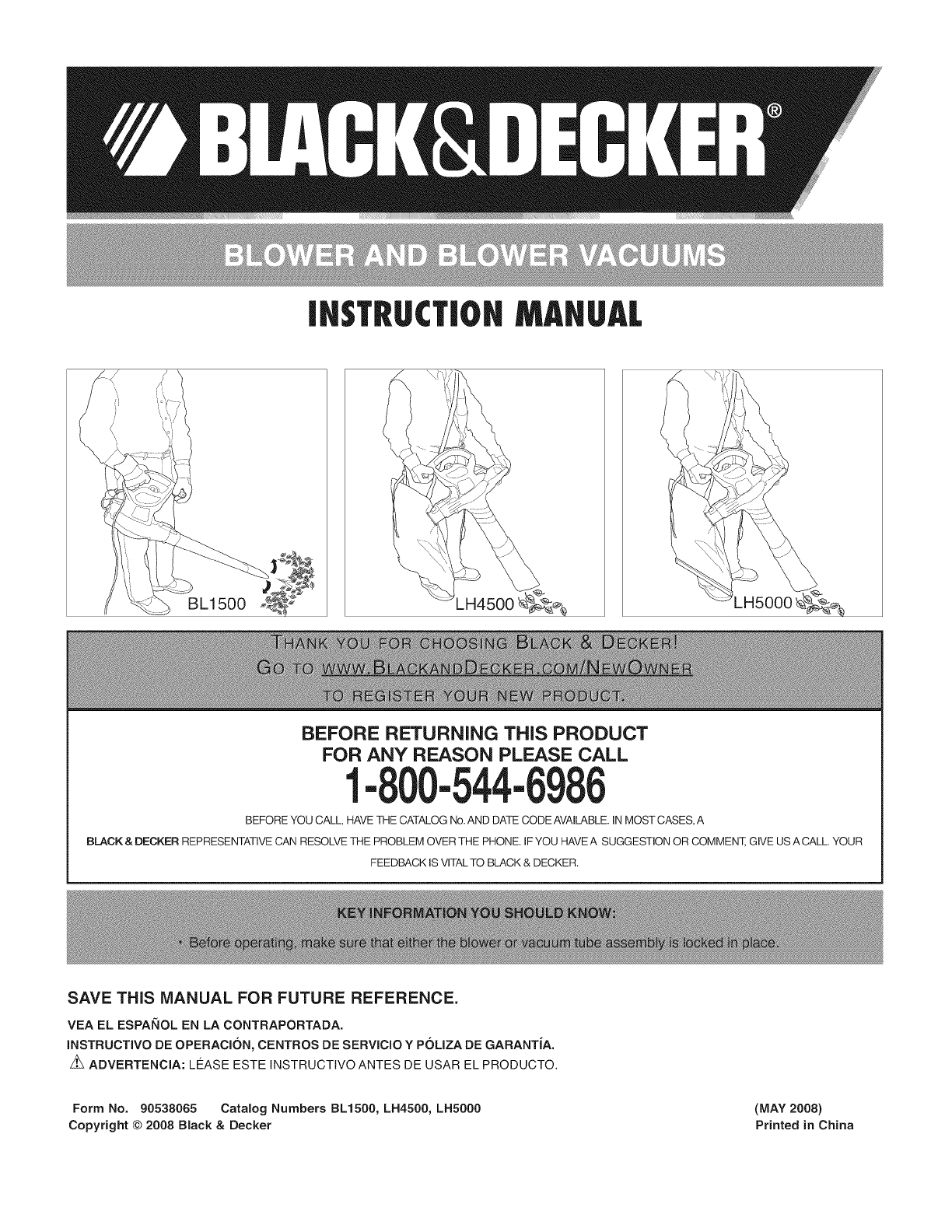 Form No. 90538065 Catalog Numbers BL1500, LH4500, LH5000 (MAY 2008)