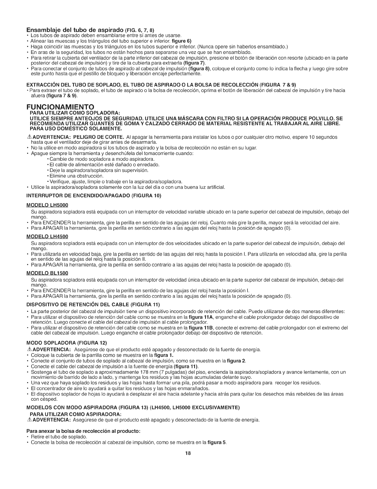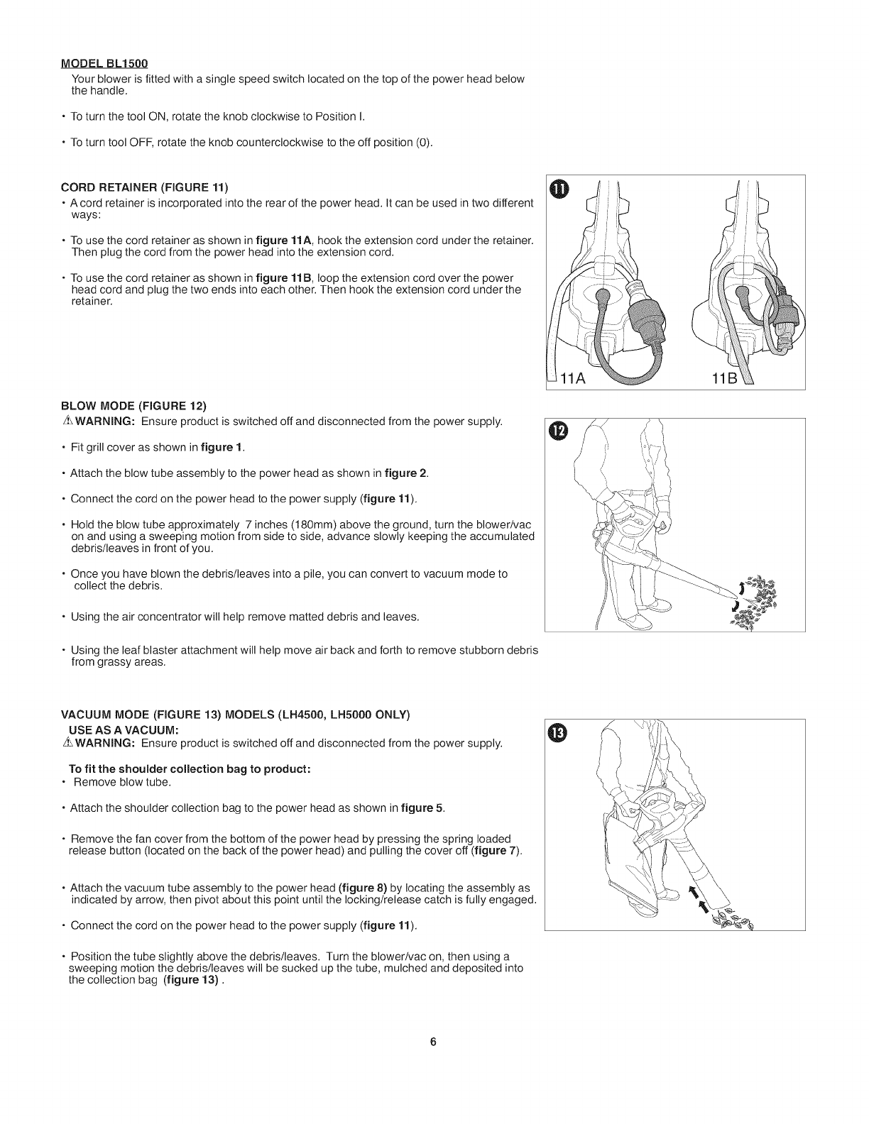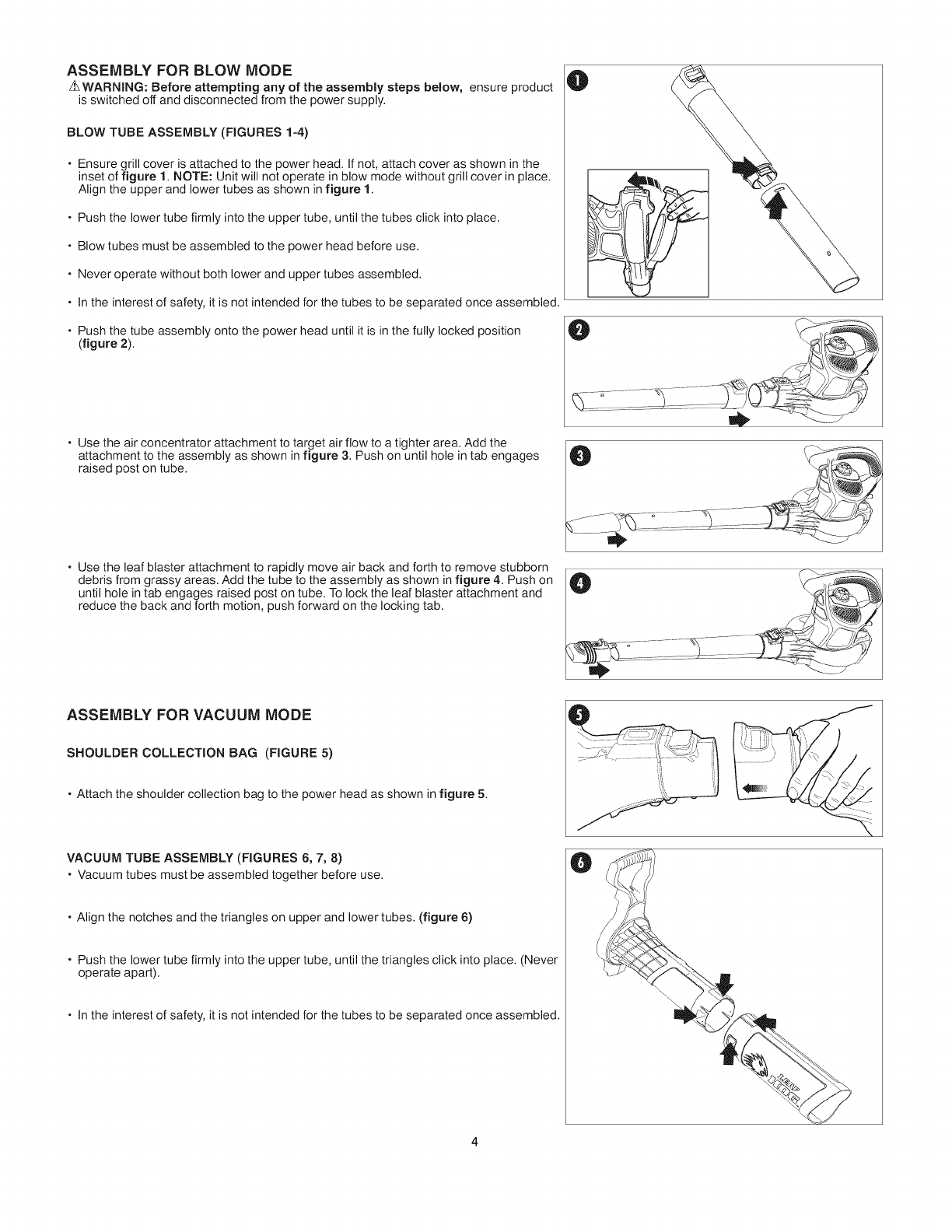 otherwise cause injury or damage during operation. As a vacuum, the tool is designed to pick up dry material such as leaves, grass, small twigs,