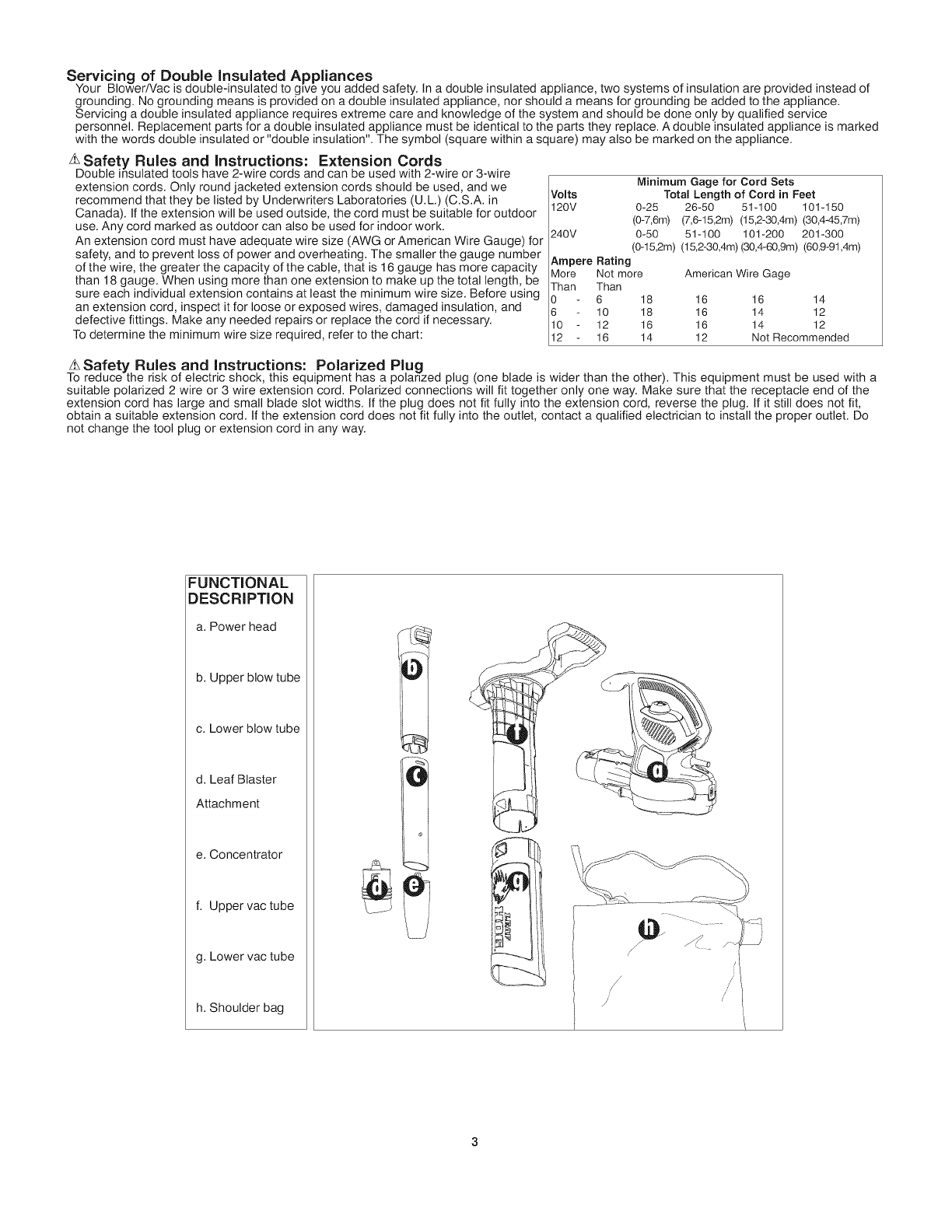•THIS APPLIANCE IS PROVIDED WITH DOUBLE INSULATION. Use only identical replacement parts. See instructions for servicing of double