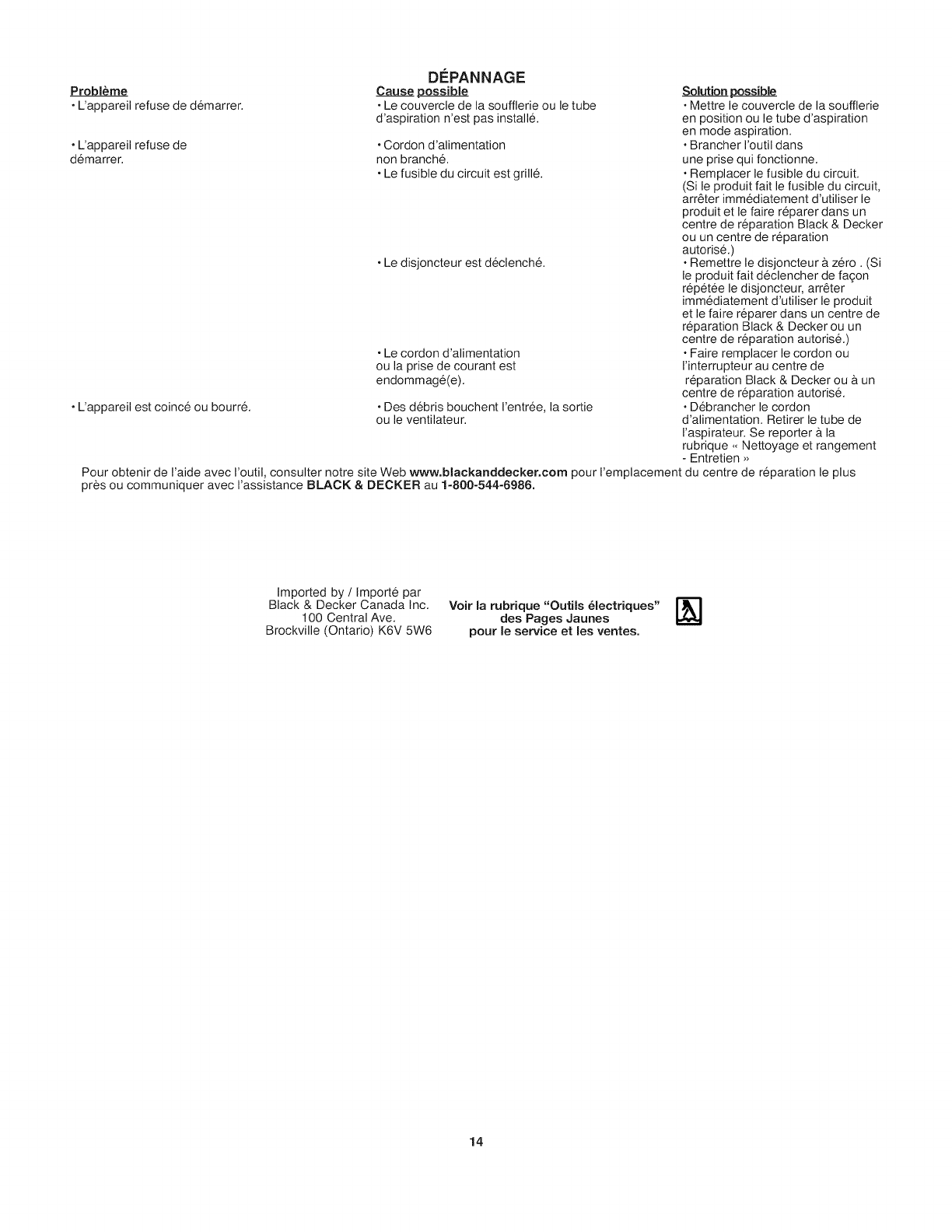 BLACK & DECKER REPRESENTATIVECAN RESOLVETHE PROBLEMOVERTHE PHONE.IFYOU HAVEA SUGGESTIONOR COMMENT,GIVEUS A CALL.YOUR