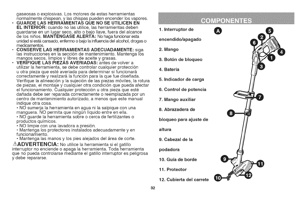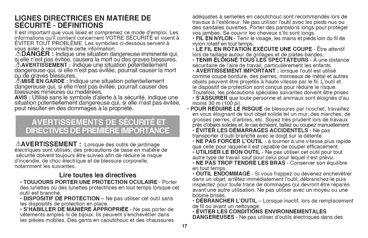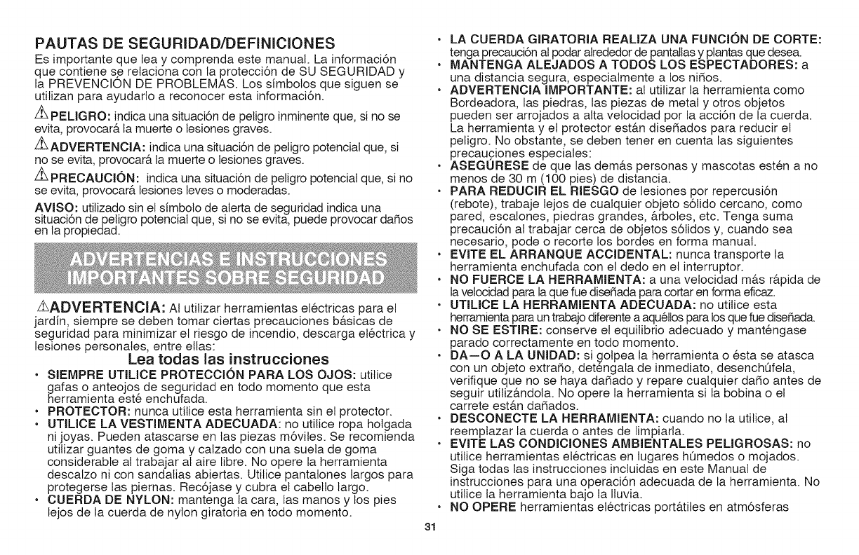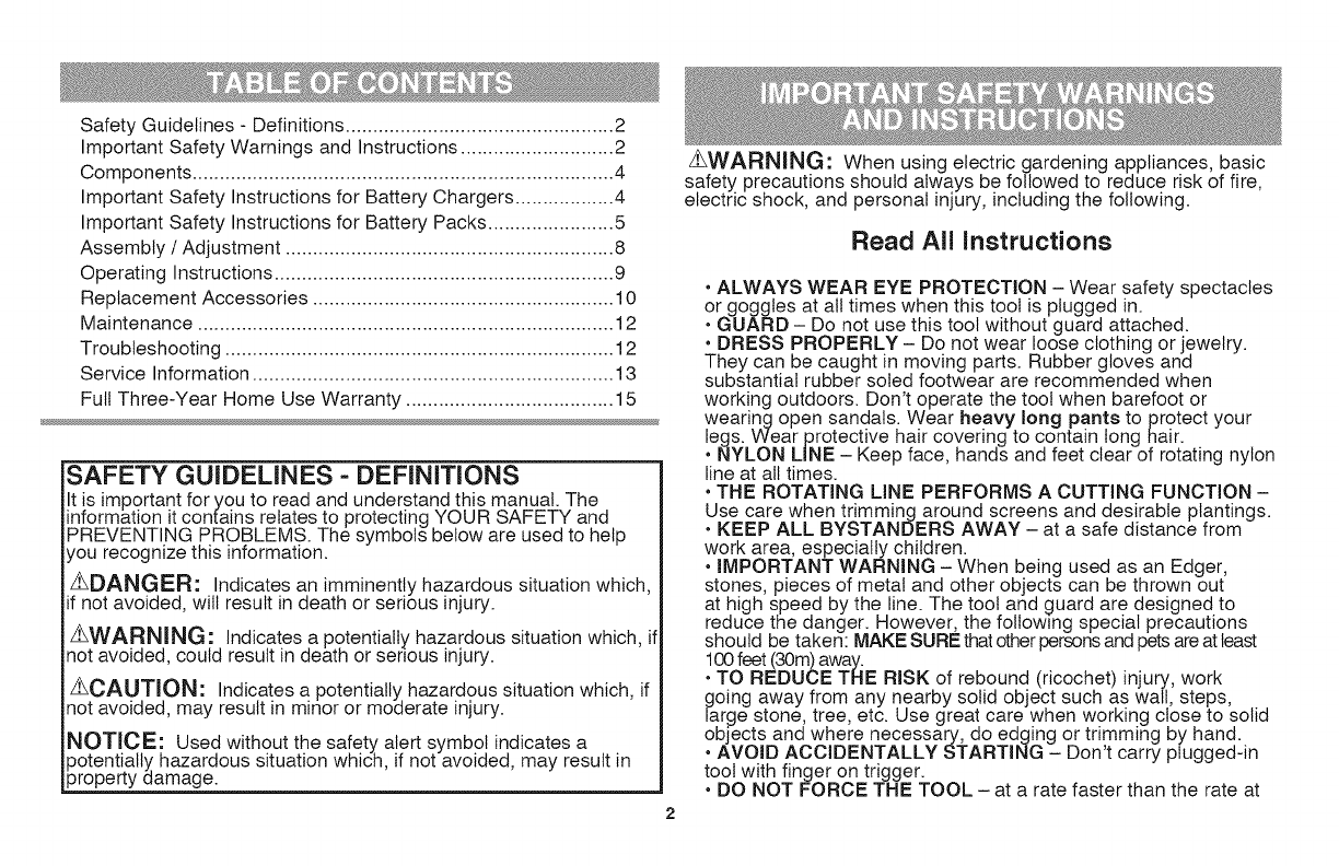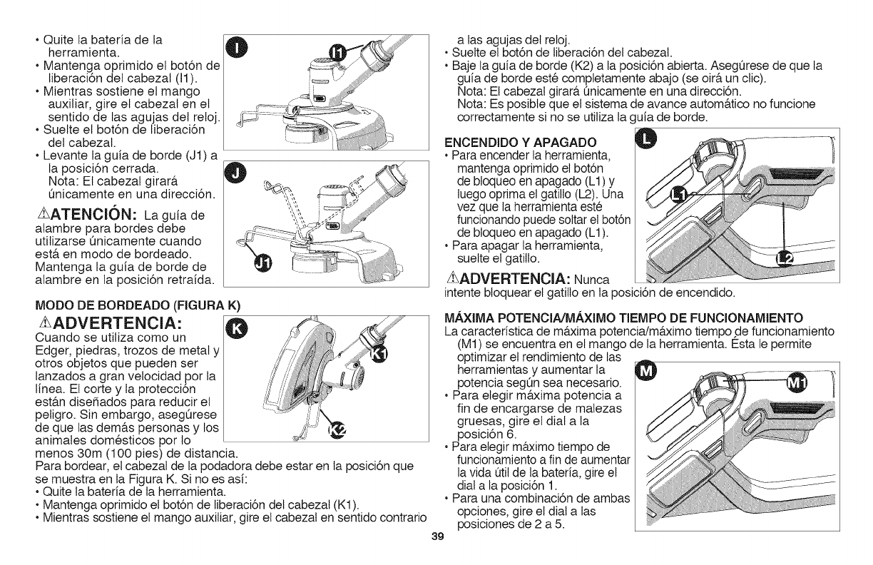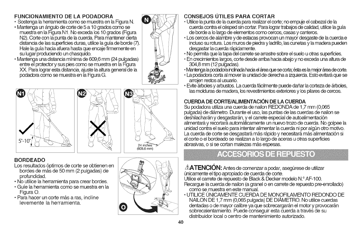 • NYLON LiNE - Keep face, hands and feet clear of rotating nylon