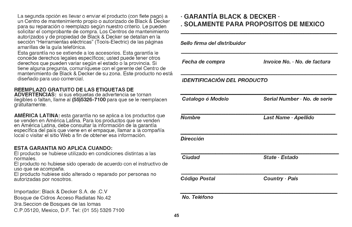 C.P.05120, Mexico, D.F. Tel: (01 55) 5326 7100 45