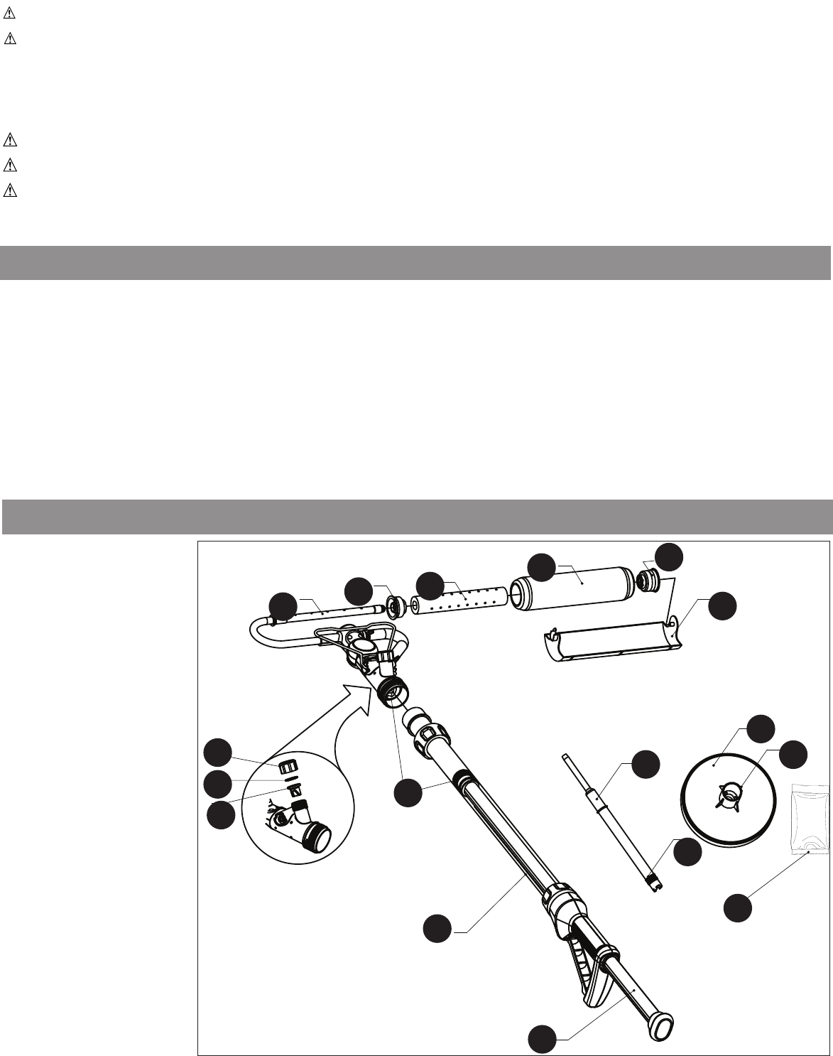 • When servicing, use only identical replacement parts. Failure to do so may result in personal injury.