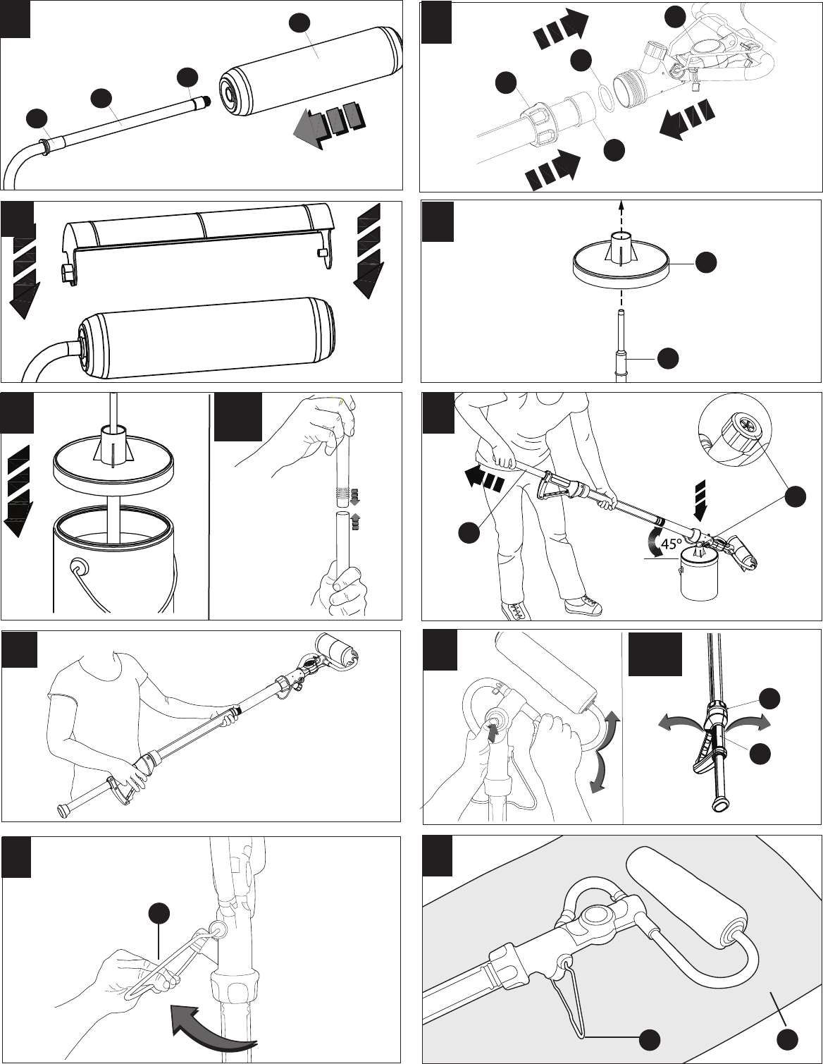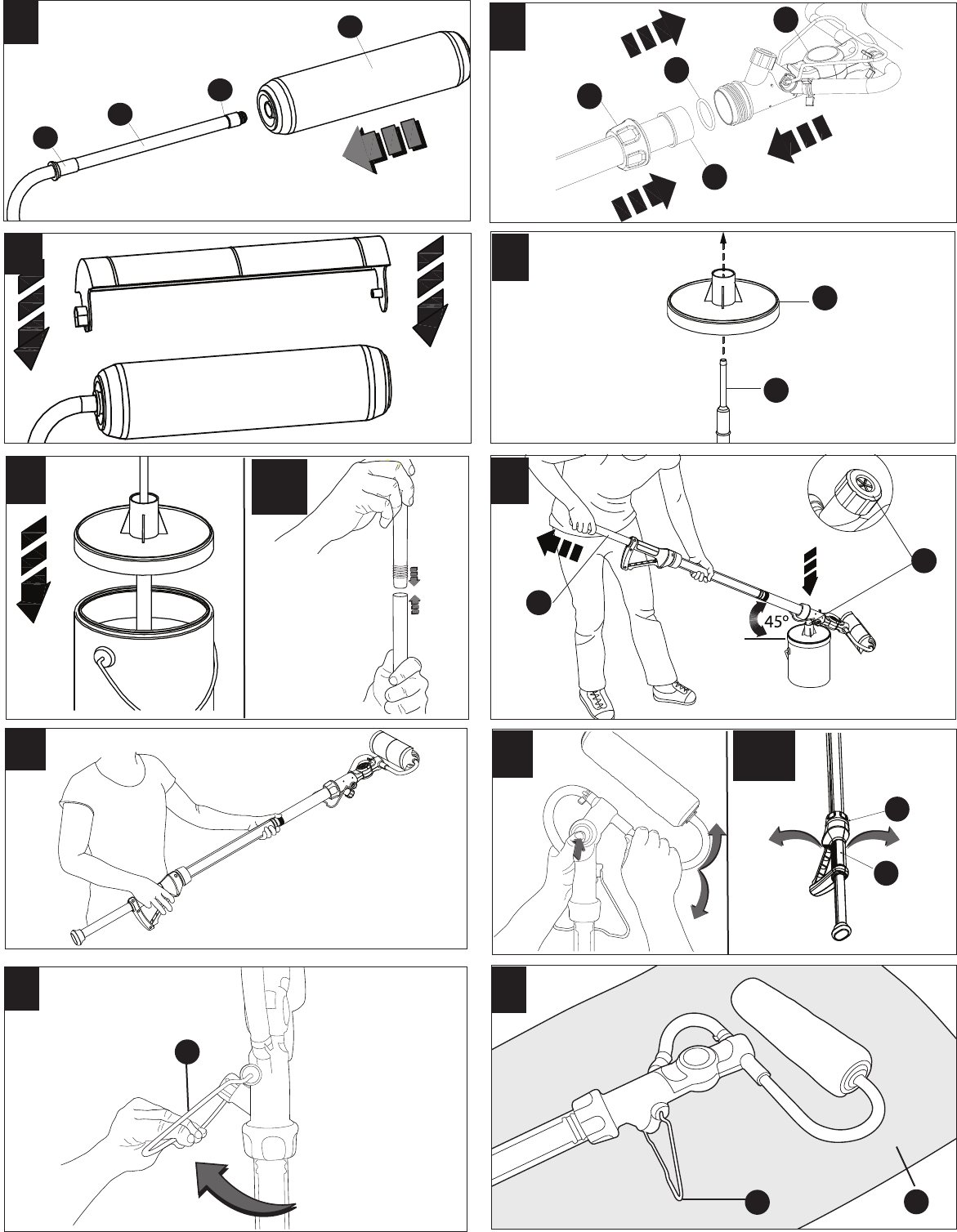 Adjust roller head to desired angle. Begin rolling on wall and push plunger
