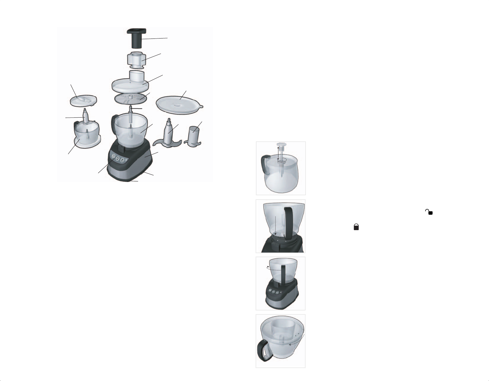 Turn clockwise to lock in place. The pusher is used to guide foods through the