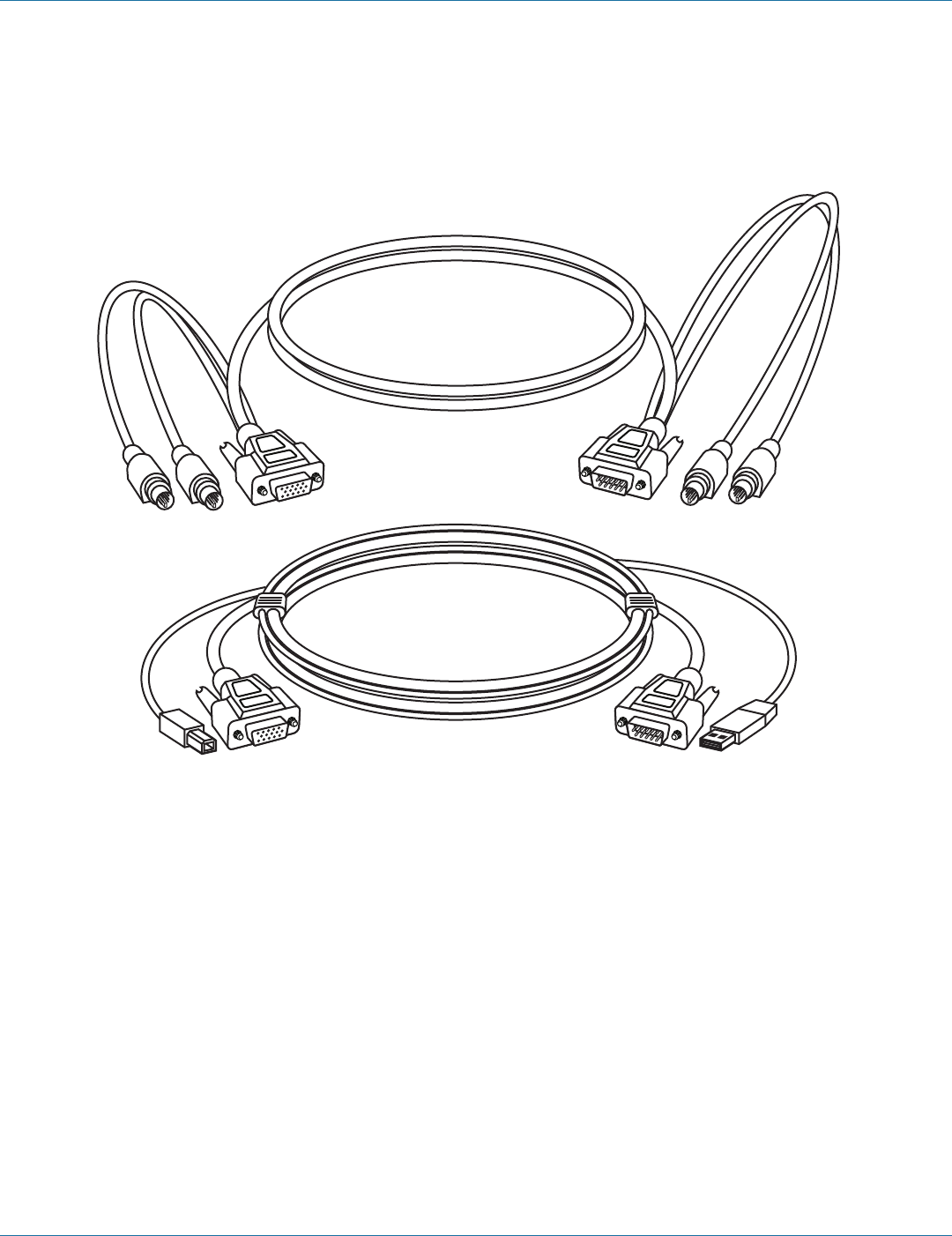 NOTE: These cables are included only with the 1-Port VGA PS2/USB (KVT4S1UV) module.