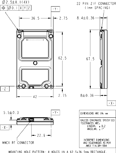 MMCX The connector on the RIM GPRS Radio Modem to which an antenna
