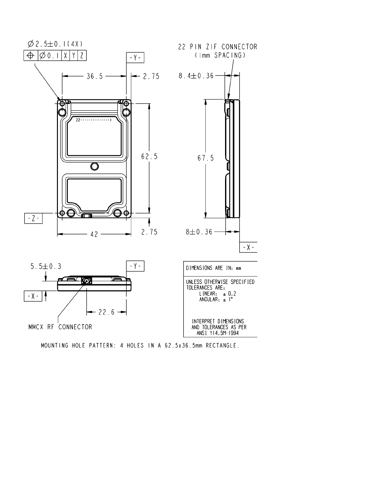 Footprint: 42.0 by 67.5 mm (1.65” x 2.66”)