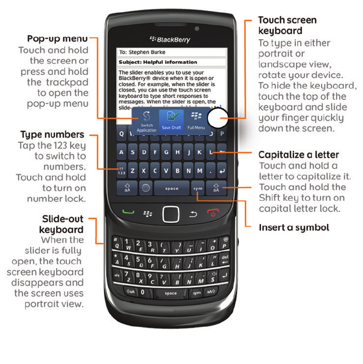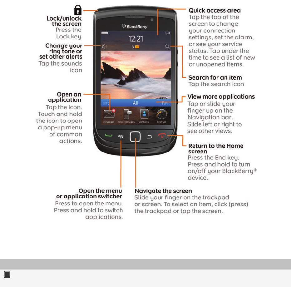 BlackBerry Limited Handheld Blackberry® with GSM/GPRS/EDGE 850/1900, WCDMA/HSDPA II/V, 802.11b/g/n, Bluetooth and GPS BlackBerry Torch Smartphone 6 1 User Guide