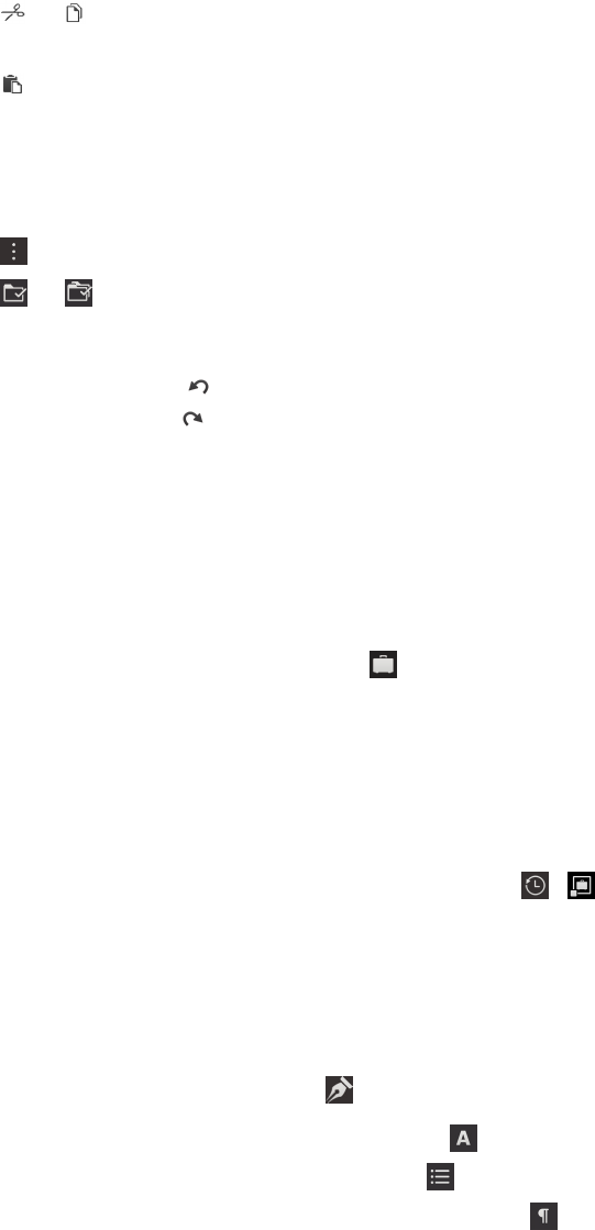 When you select text for editing, a menu appears on the screen to enable you to cut, copy, and paste