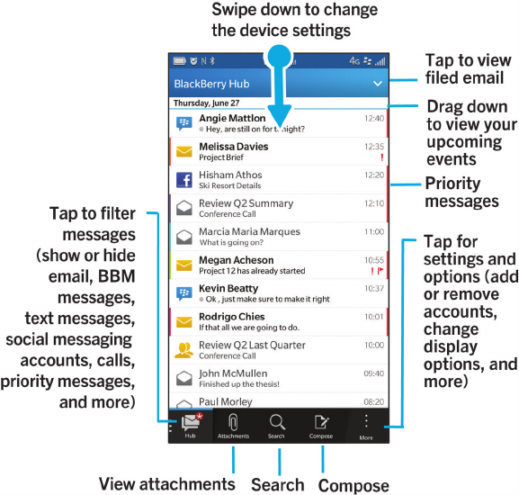 The BlackBerry Hub at a glance................................................................................................................... 59