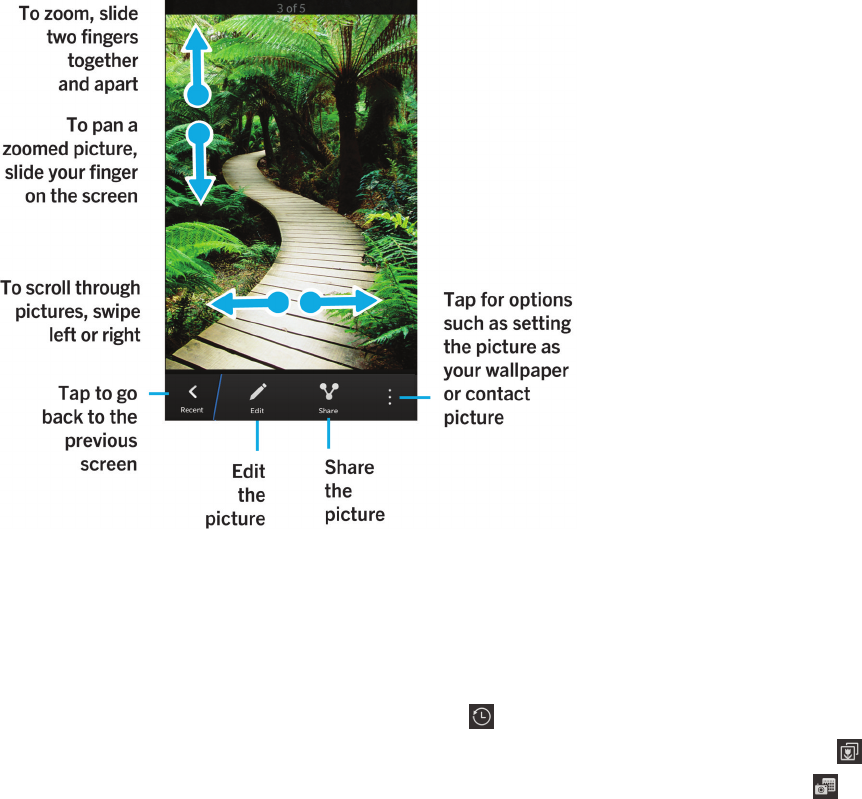 You can use the Pictures app to organize the pictures you take with and add to your BlackBerry device. You can also edit,