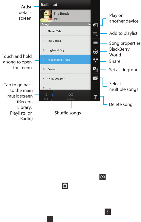 You can use the Music app on your BlackBerry device to play and organize your music, and create playlists.