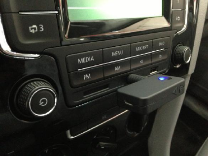 1. Connect the 3.5mm audio cable to Car Bluetooth Music Receiver’s earphone jack,