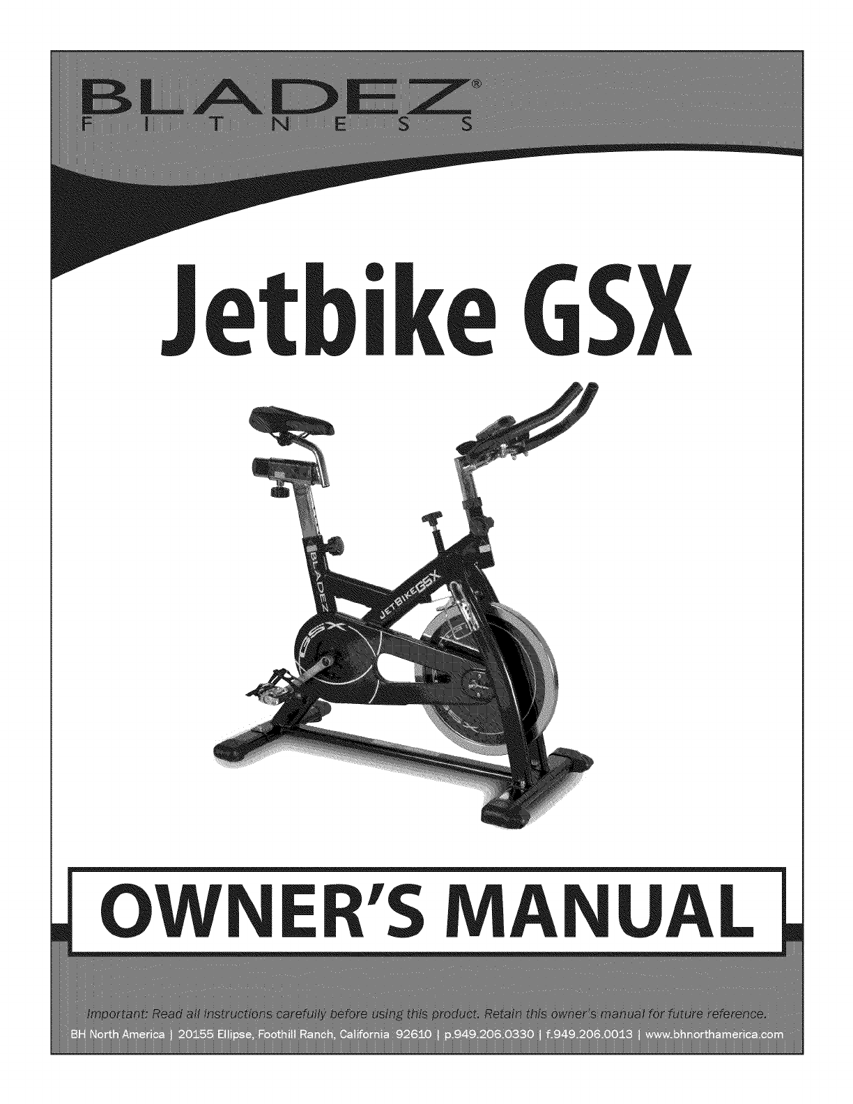 User Manual: Bladez JETBIKE GSX JETBIKE GSX BLADEZ JETBIKE GSX CYCLE - Manuals and Guides View the owners manual for your BLADEZ JETBIKE GSX CYCLE #JETBIKEGSX. Home:Fitness Equipment Parts:Bladez Parts:Bladez JETBIKE GSX CYCLE Manual