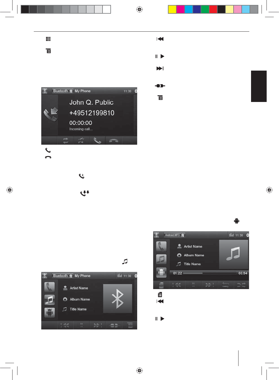 Langdruck: Bluetooth®-Funktion aufrufen bzw. Dis-