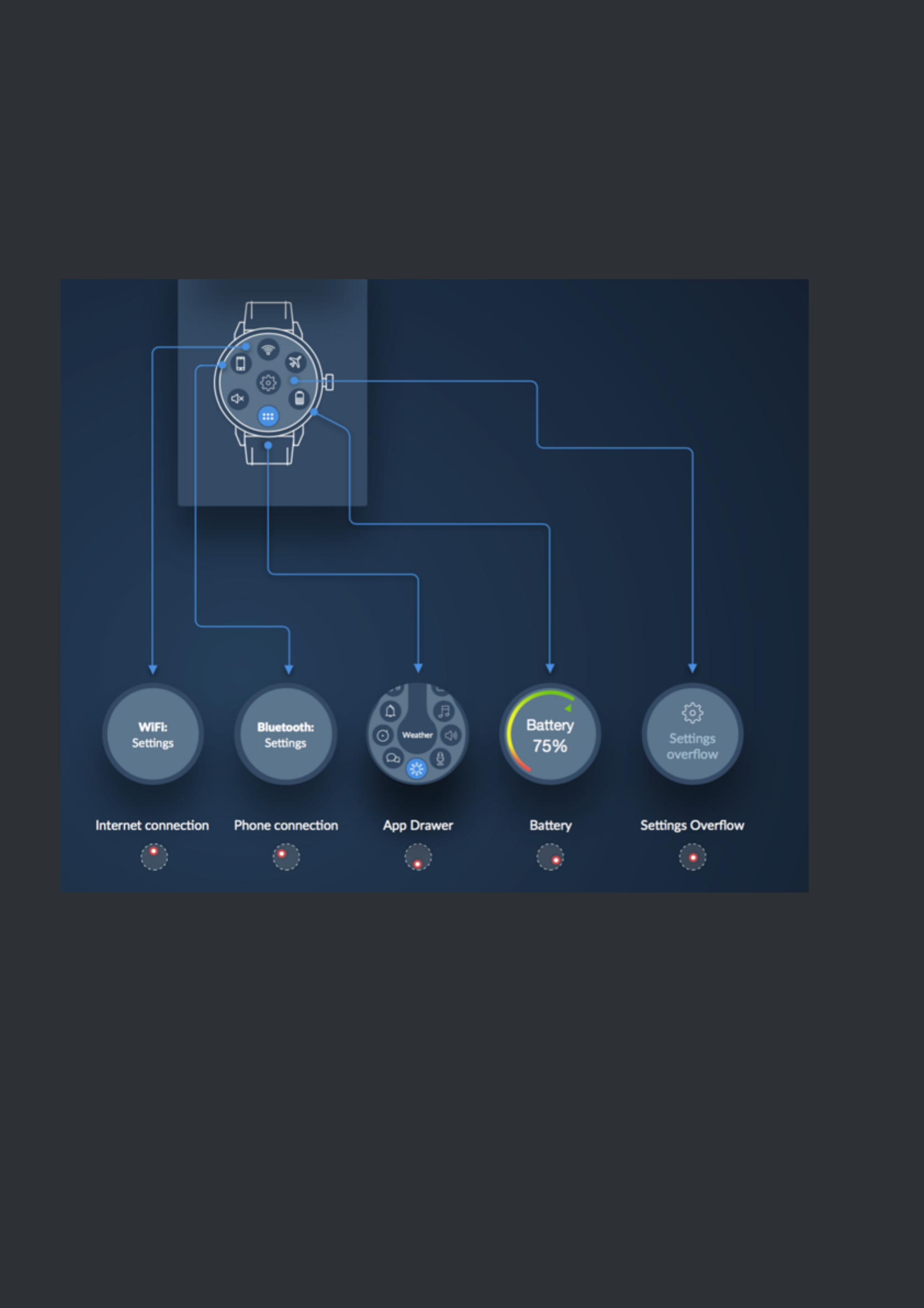You can see the battery, wifi and bluetooth status, also quick access power, do not