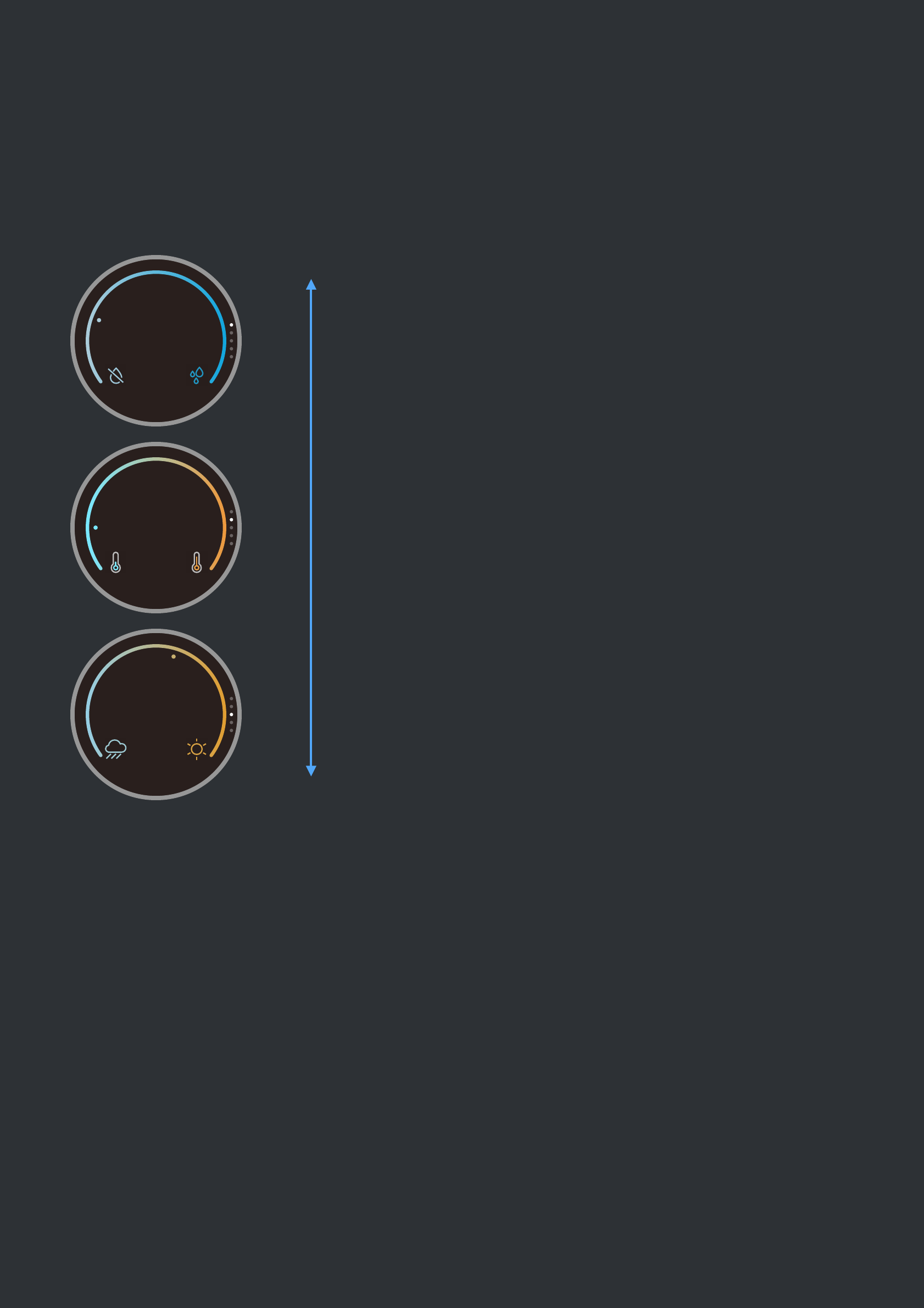 Tap the gear icon to setting pages, swipe to 3 main categories. In each category,